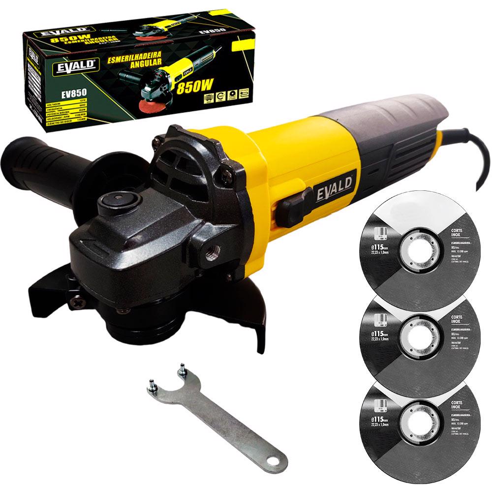 Esmerilhadeira Angular 4.1/2 POL 850W 115MM EV850 EVALD + Kit 3 Discos