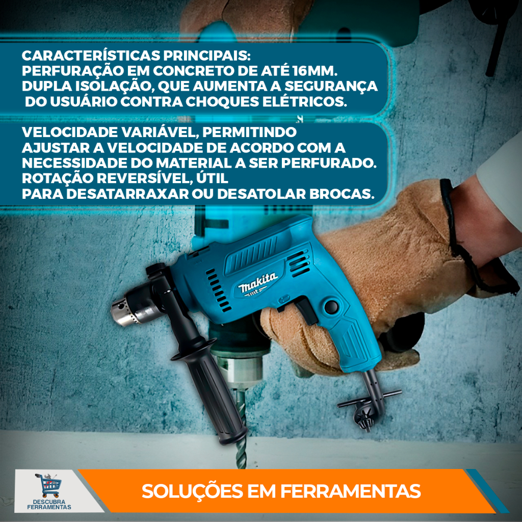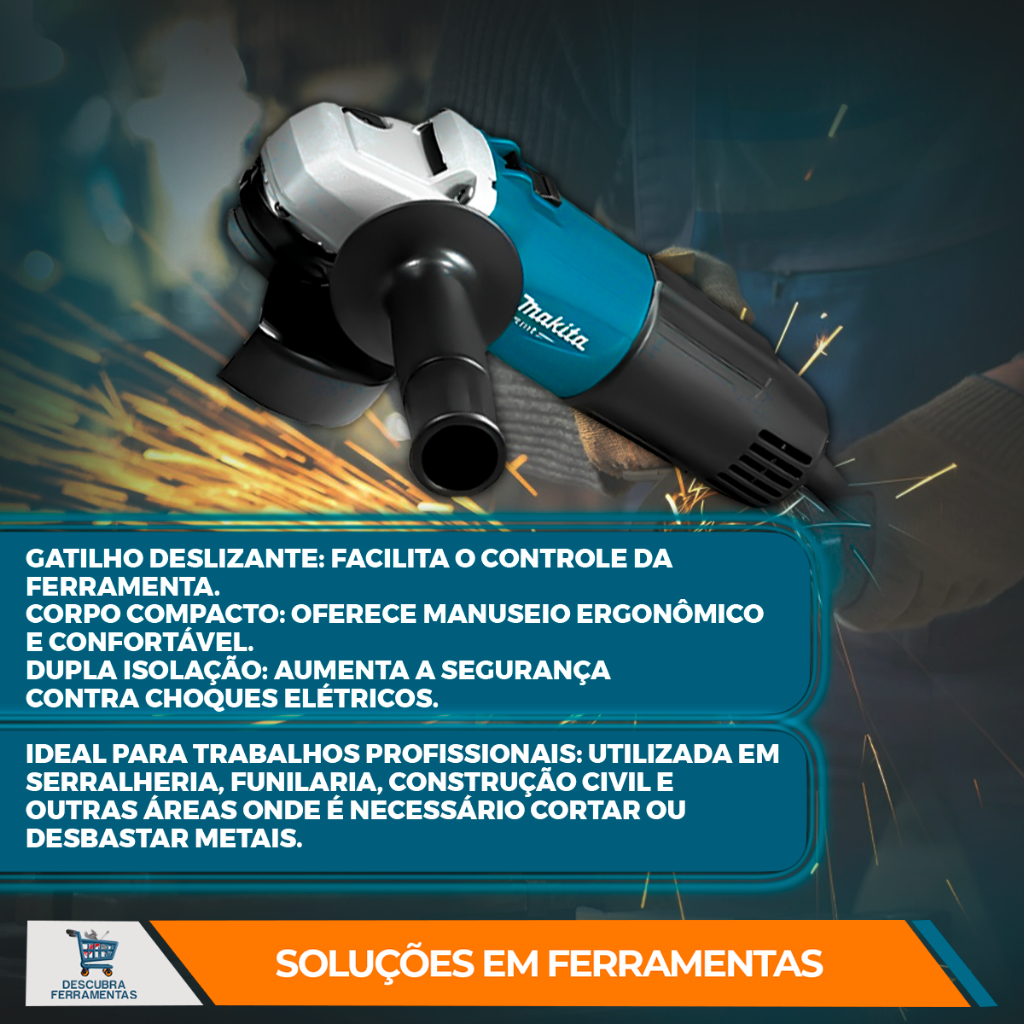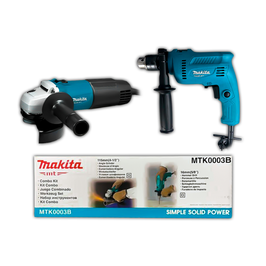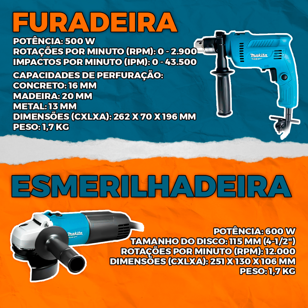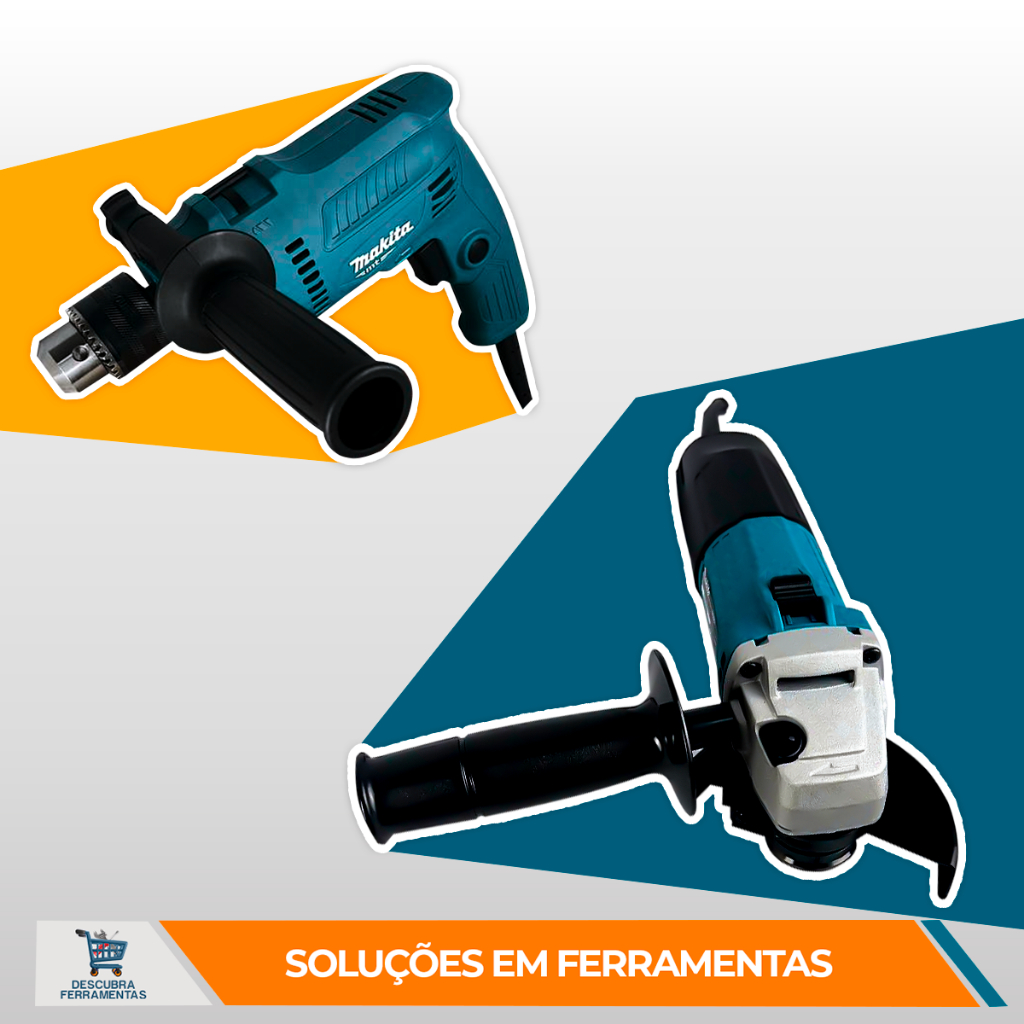 Esmerilhadeira Angular Makita 600W M0901B + Furadeira de Impacto 550W M0801B para Metal Concreto