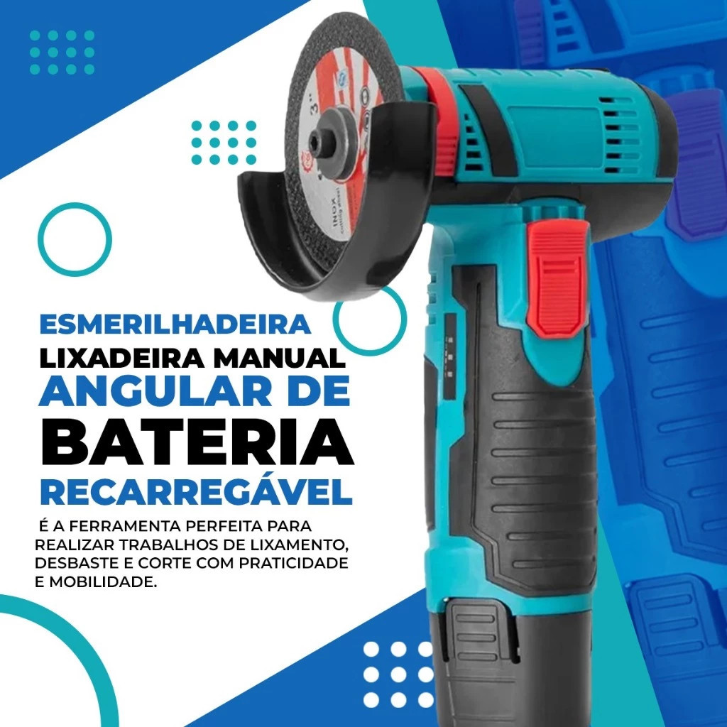 Esmerilhadeira Lixadeira Recarregável Sem Fio Portátil 2 baterias 12v Serra Mármore /fio Serra