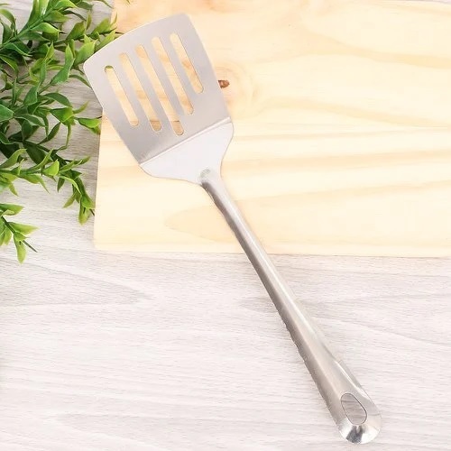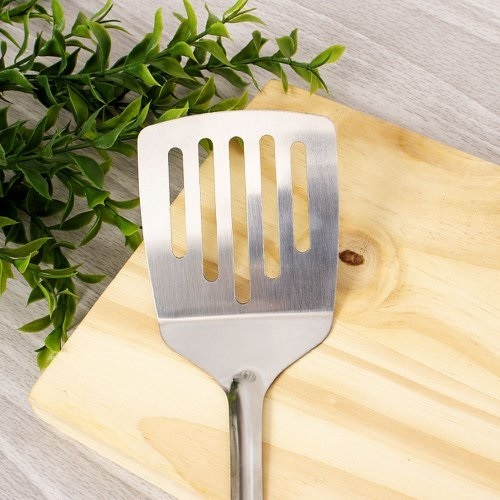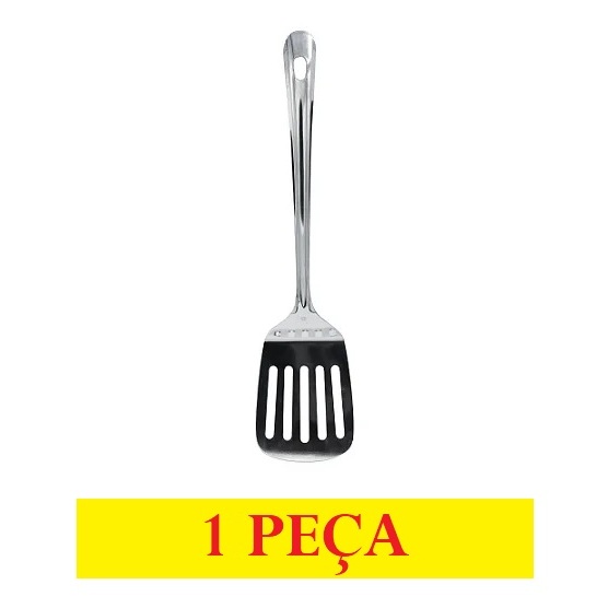 Espátula Vazada De Aço Inox 26,5x7Cm Para Cozinha Original Line Prática E Fácil De Se Usar