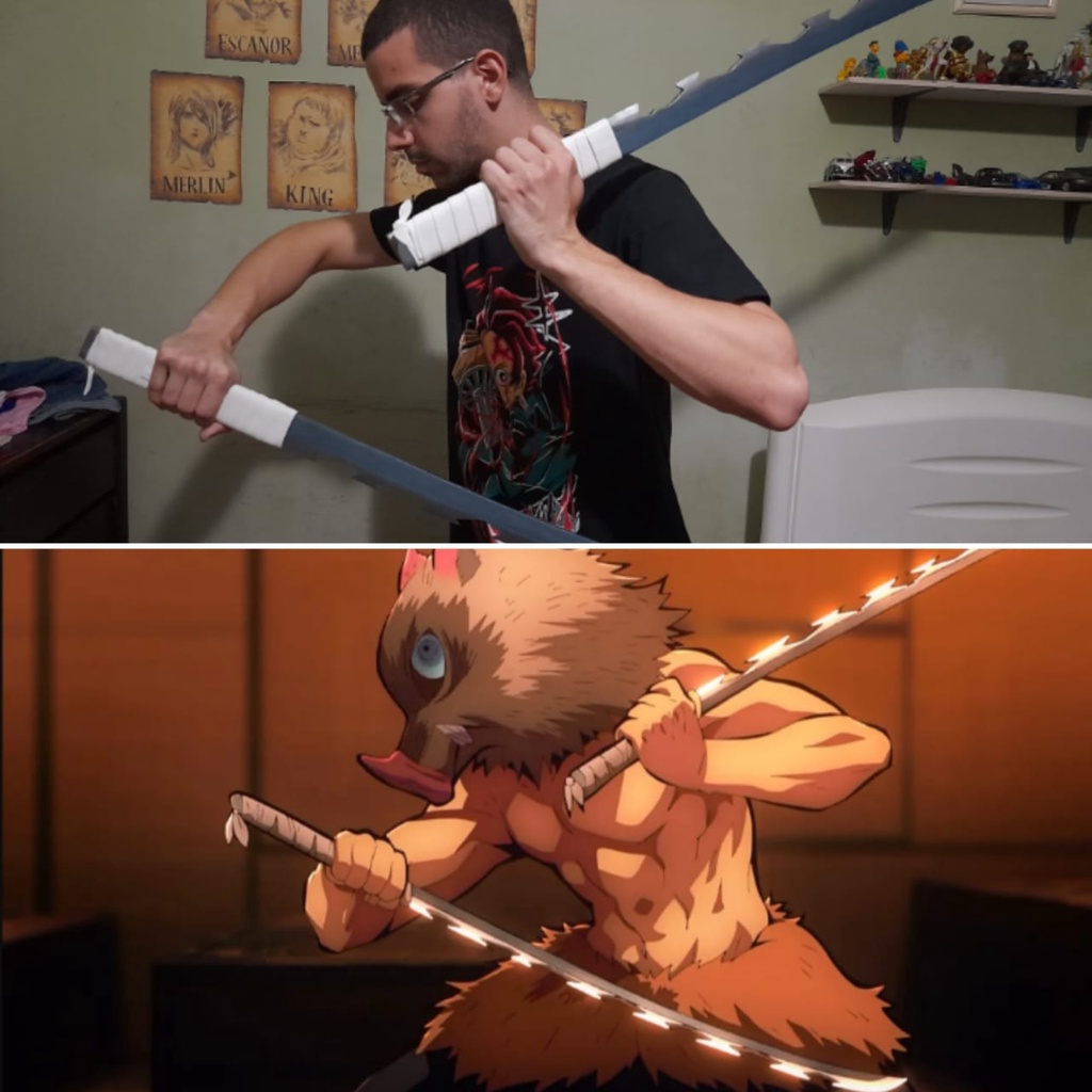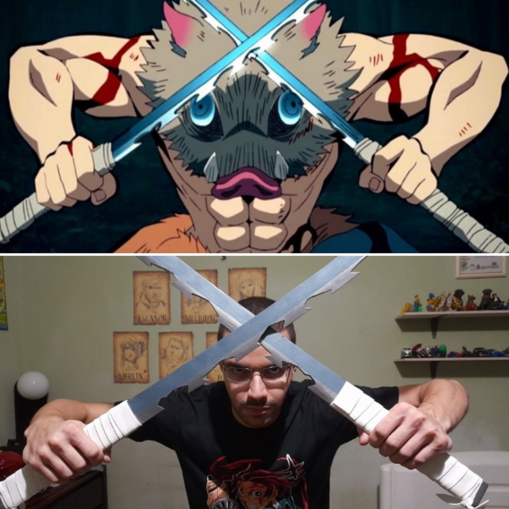 Espadas do Inosuke com bainha em tamanho real Kimetsu no Yaiba Demon slayer