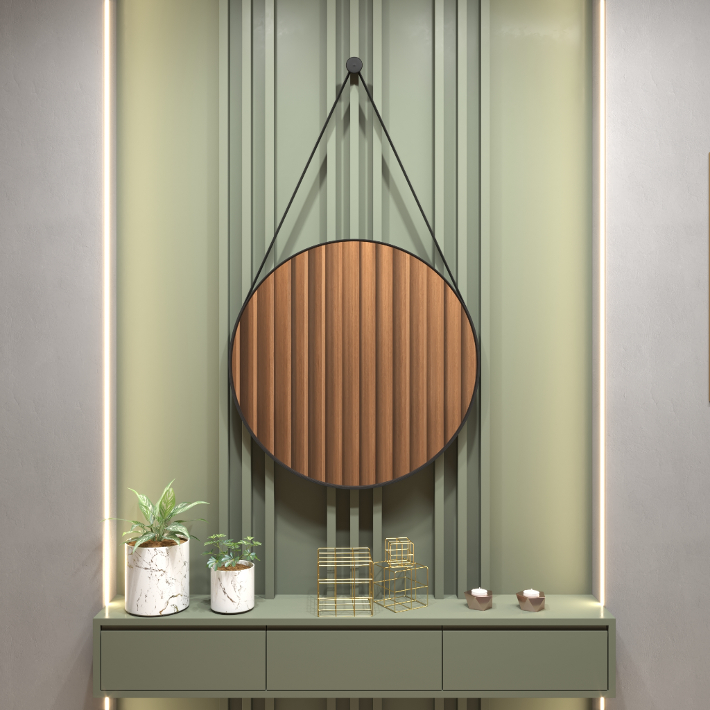 Espelho Adnet 60cm Redondo Decorativo Alça de Couro + Pino Pendurador