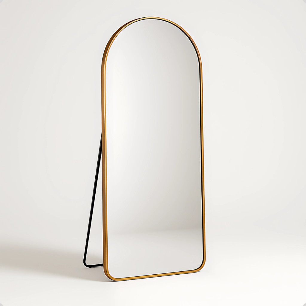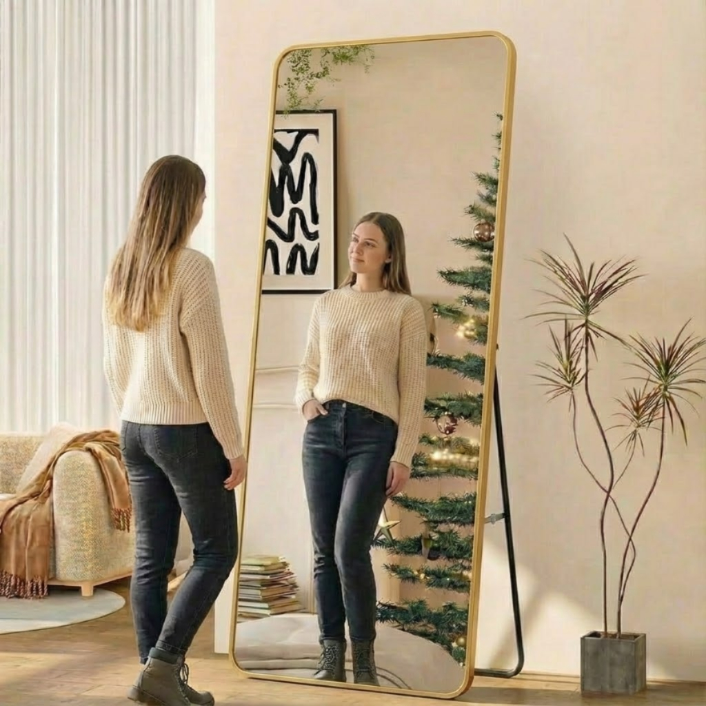 Espelho Base Reta Corpo Inteiro 170x70 Com Suporte de Chão Moldura Alumínio Quarto Sala Decorativo