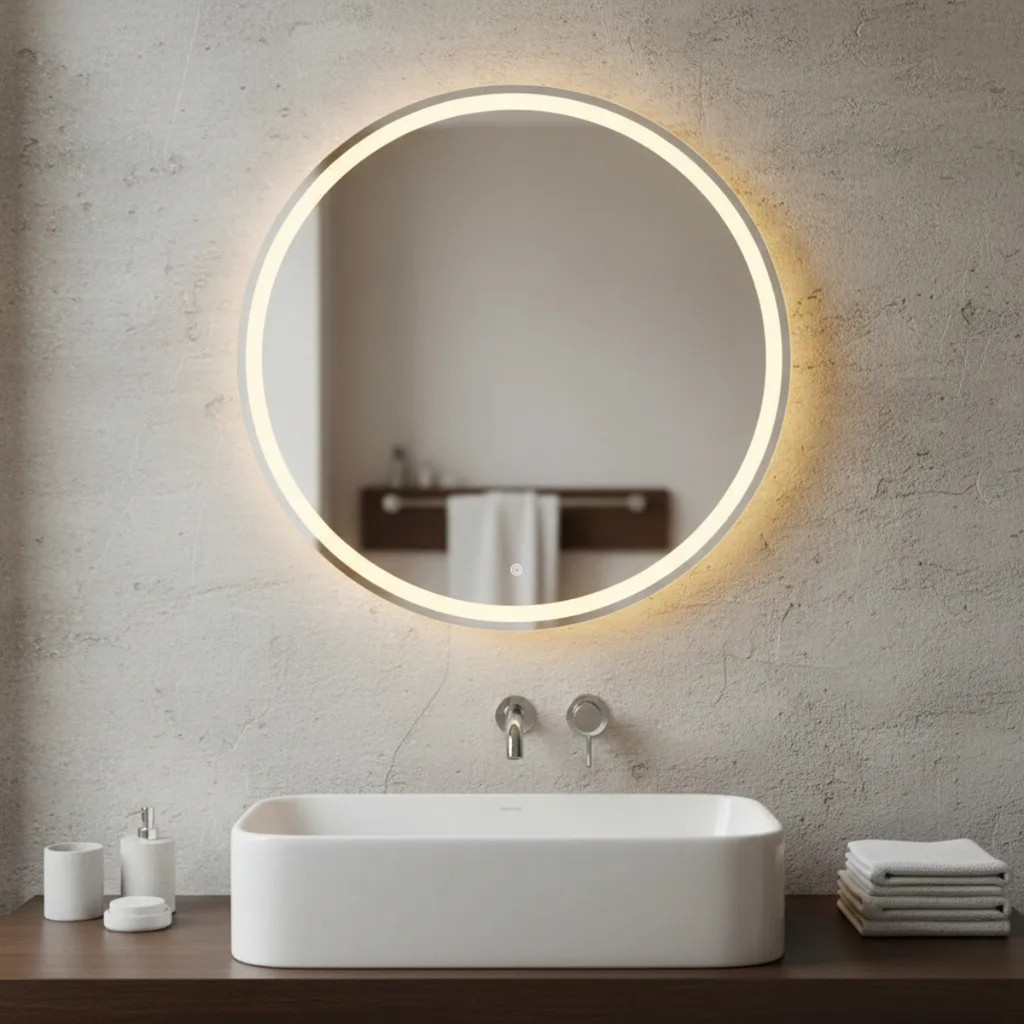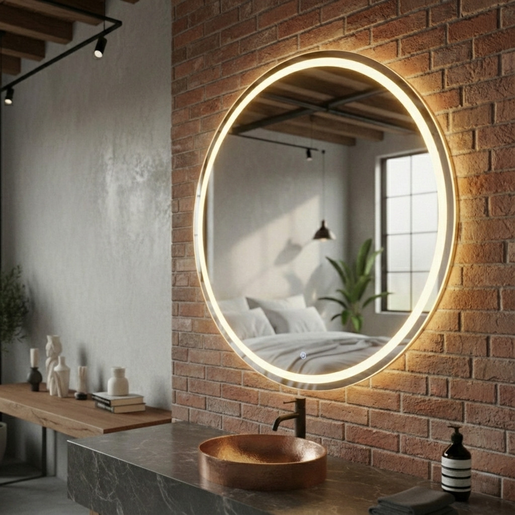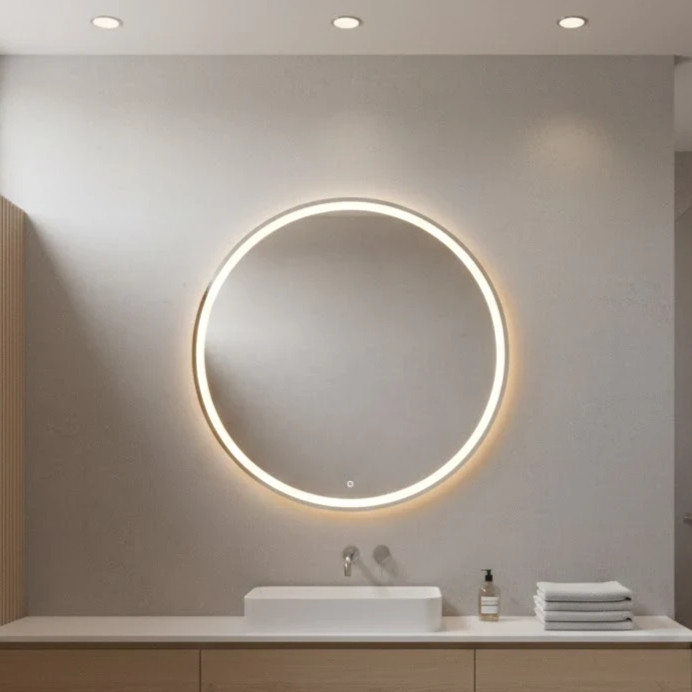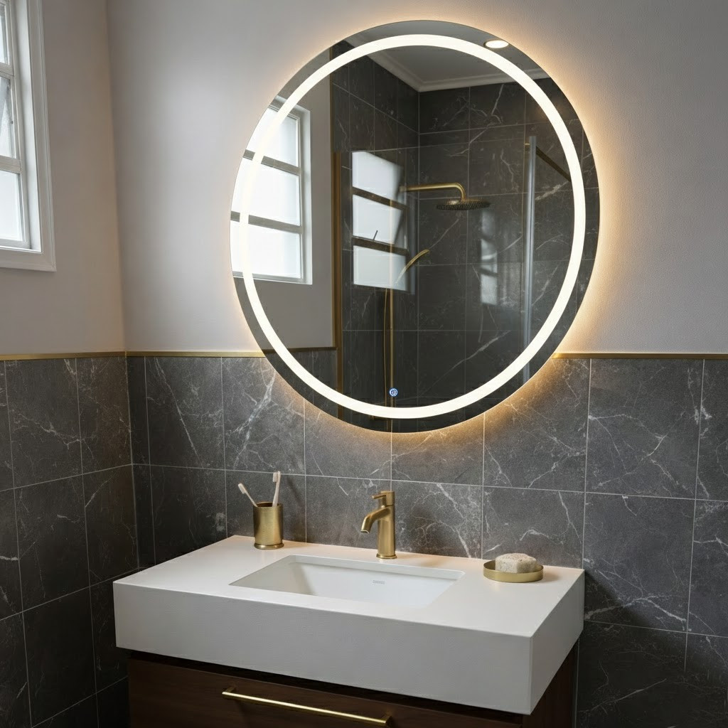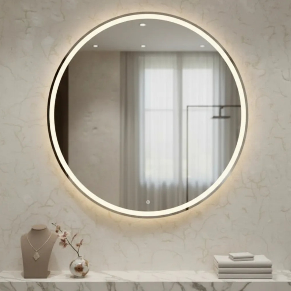 Espelho Decorativo Redondo 40cm Jateado Fino LED 3 Cores Touch Luxo Maquiagem