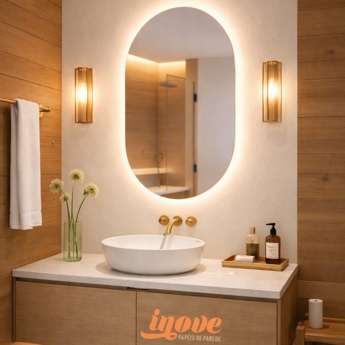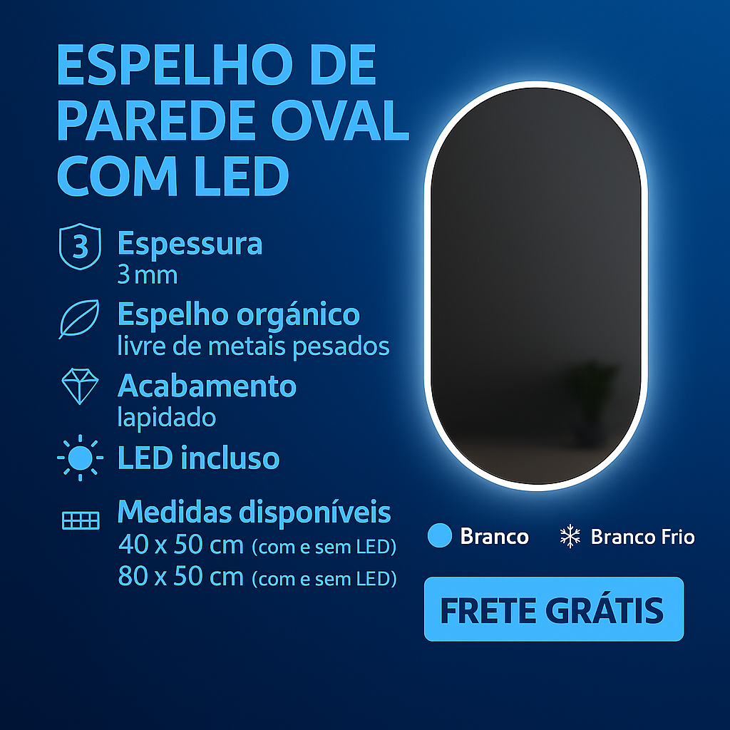 Espelho Oval de Parede com LED Luz Quente e Fria para Banheiro Sala Quarto