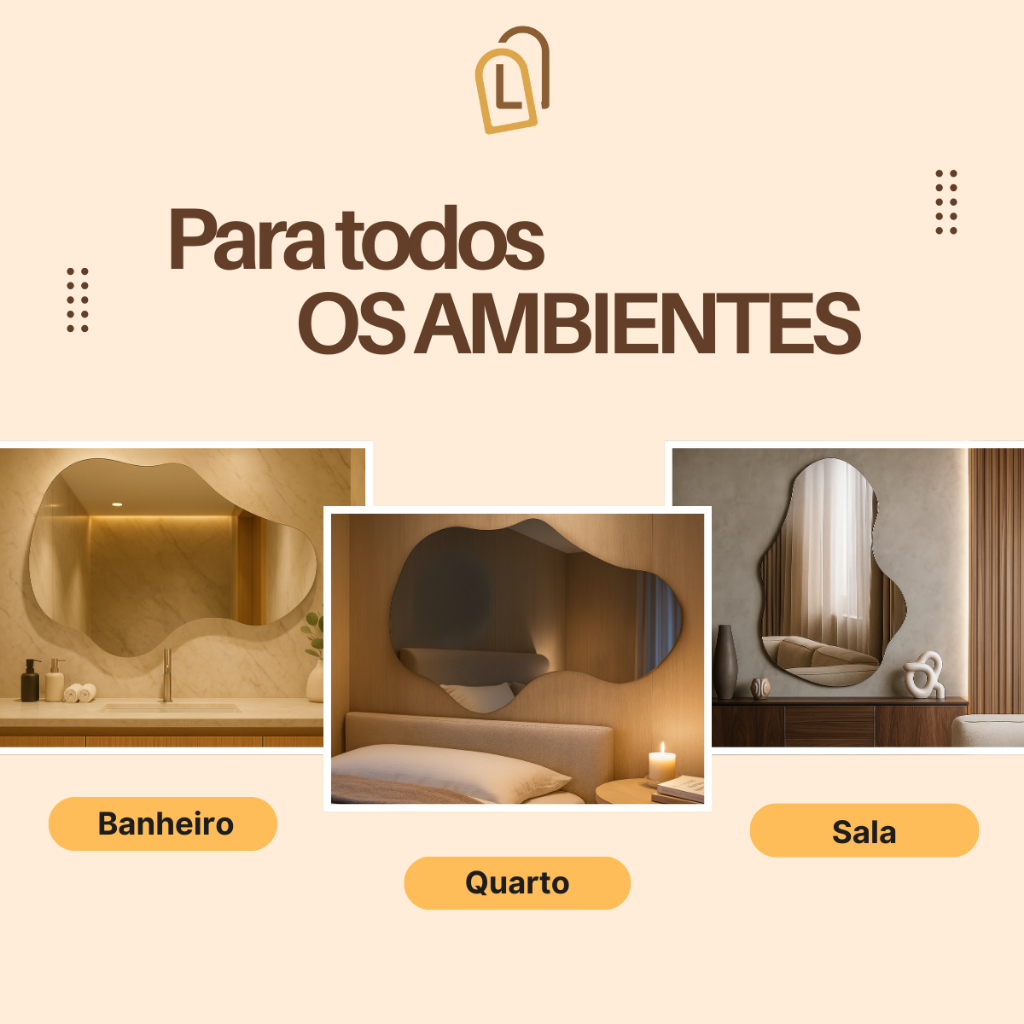 Espelho Orgânico Grande Polido 70cm até 115cm Para Quarto Sala Banheiro OG-05 Corpo Inteiro