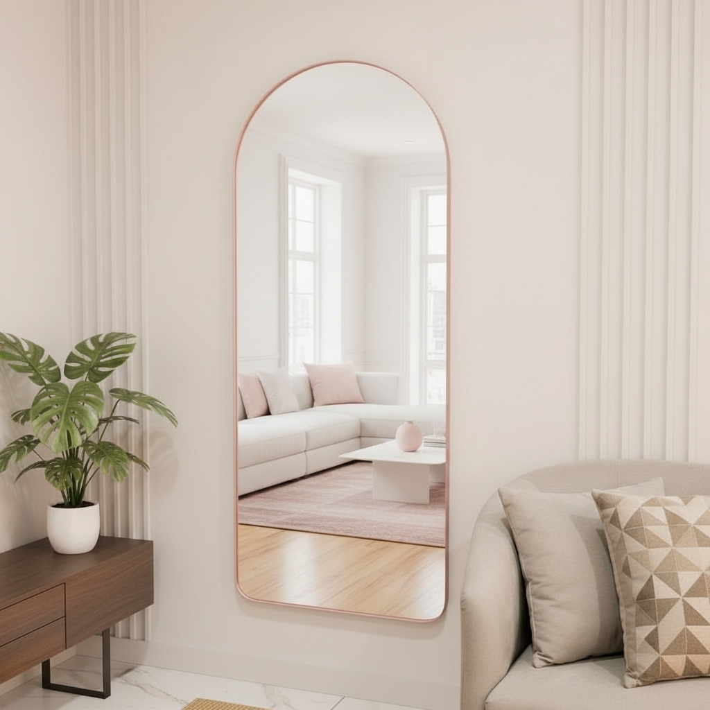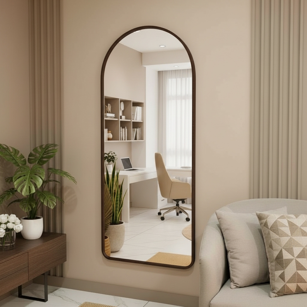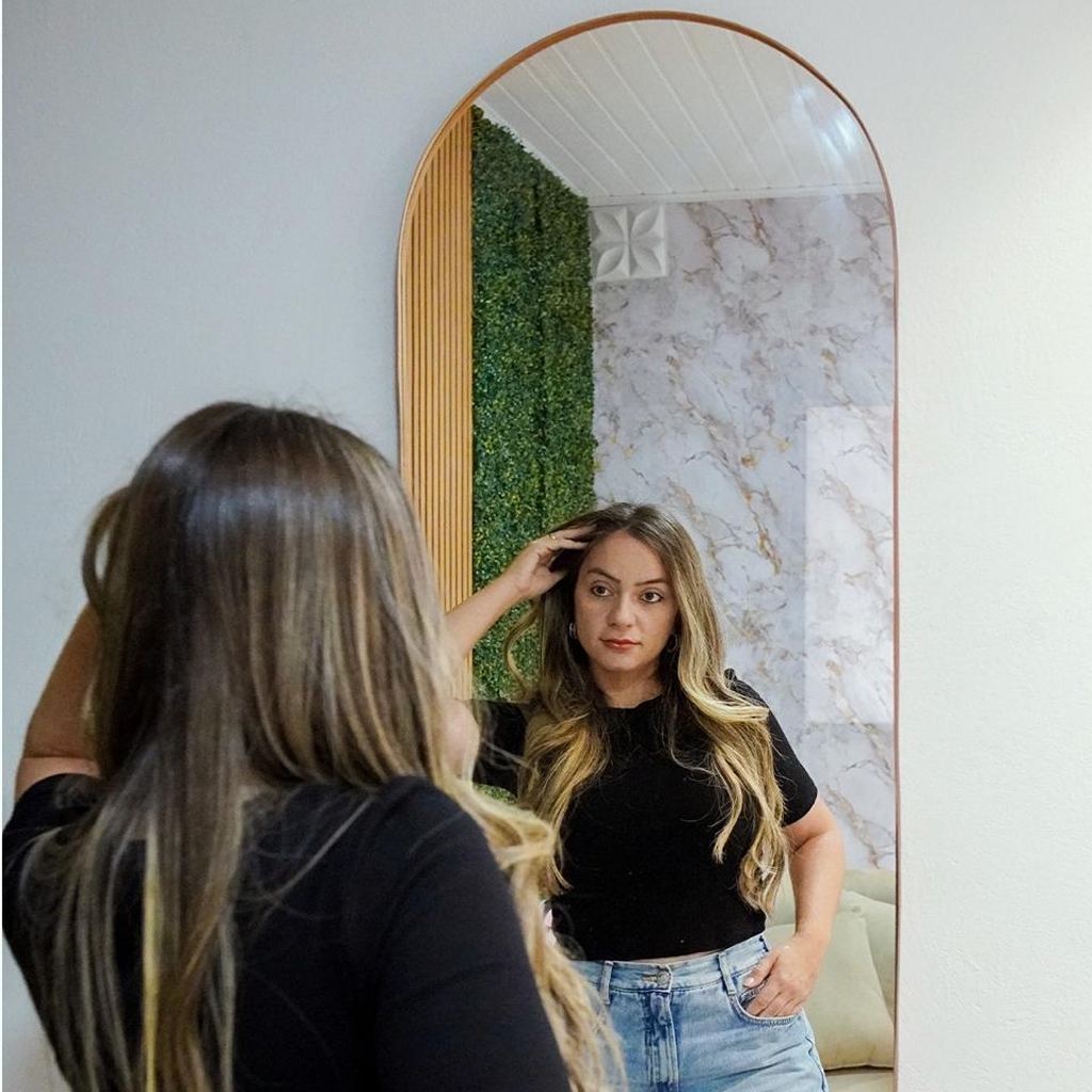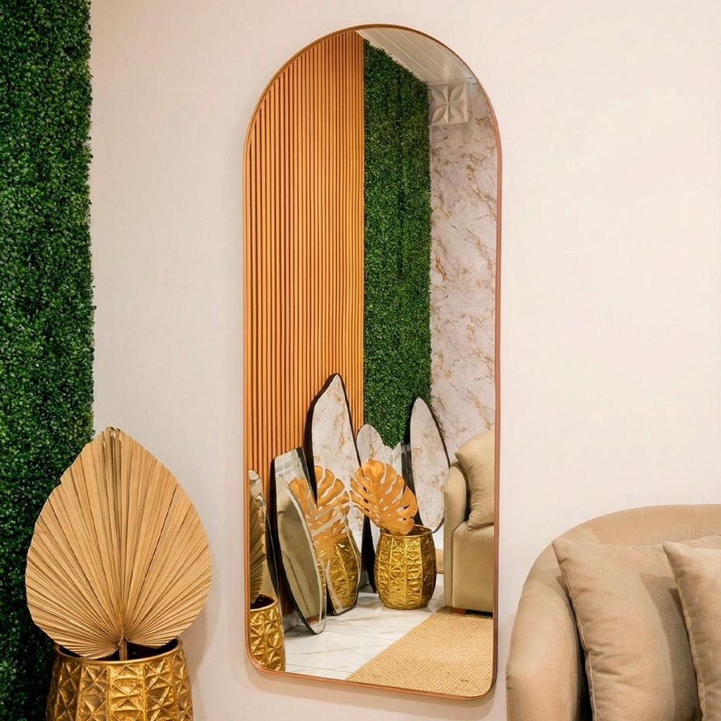 Espelho Oval Base Reta Corpo inteiro Moldura de Couro 120cm x 50cm Madri Quarto Sala Salão Loja