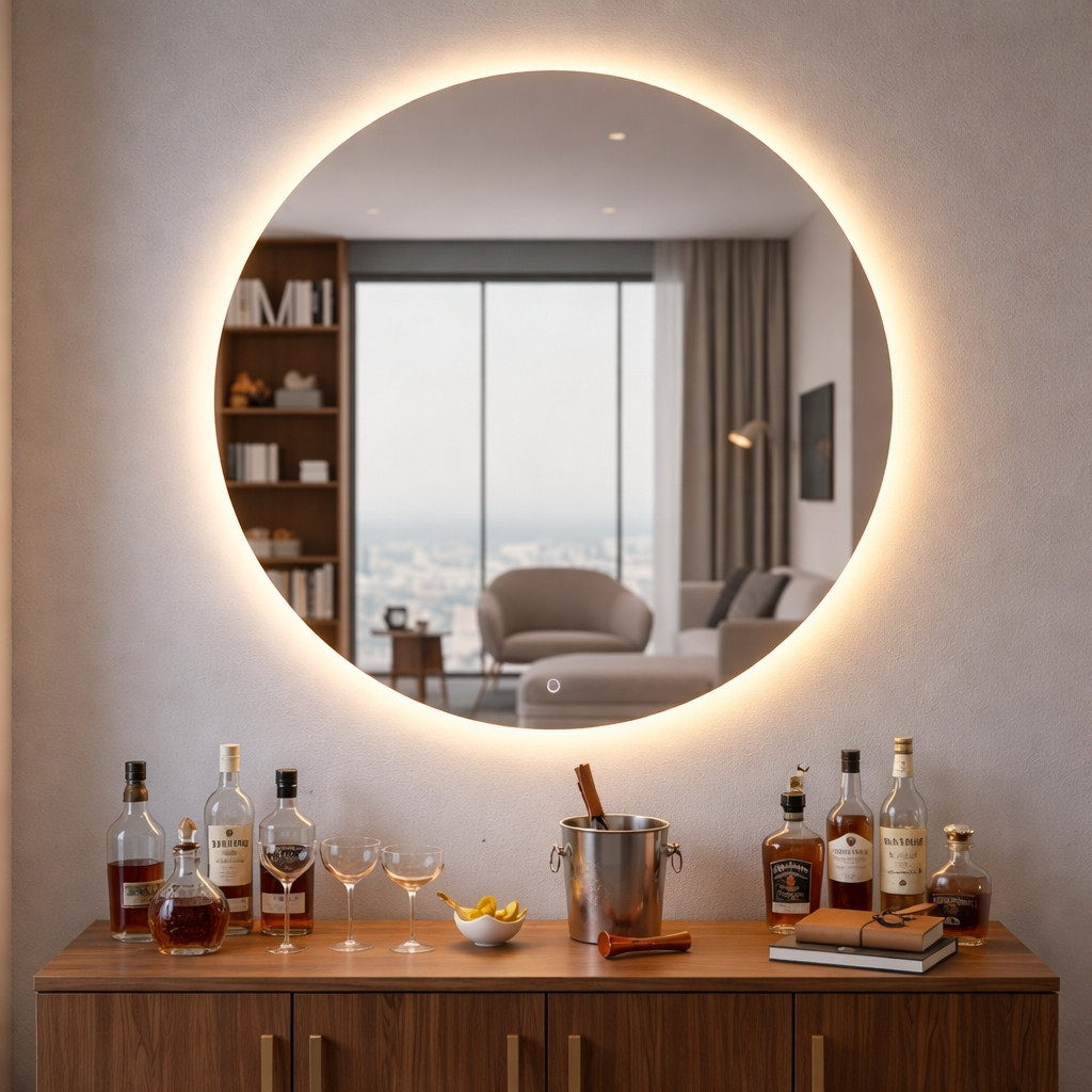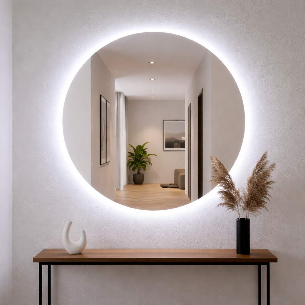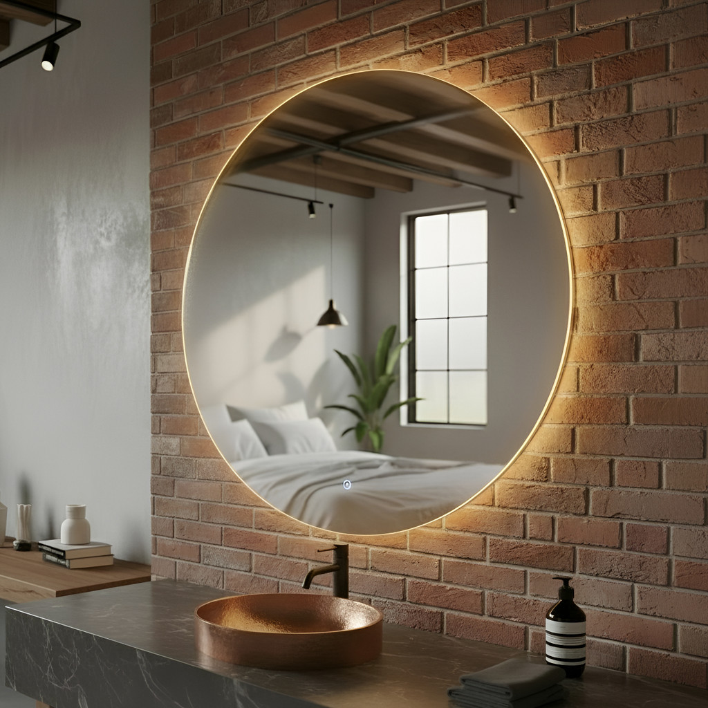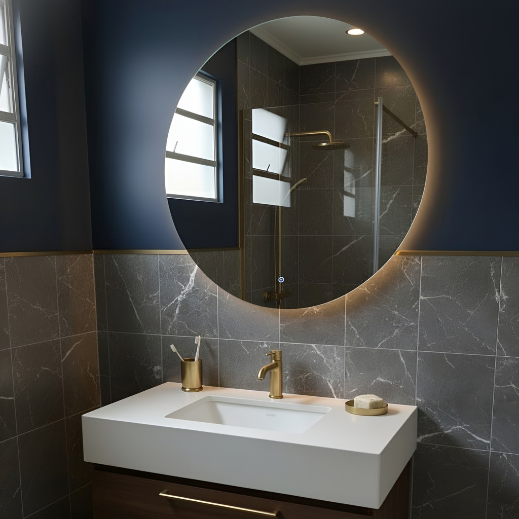 Espelho Redondo 40x40cm LED 3 Cores Lapidado Banheiro Lavabo Quarto Maquiagem Luxo