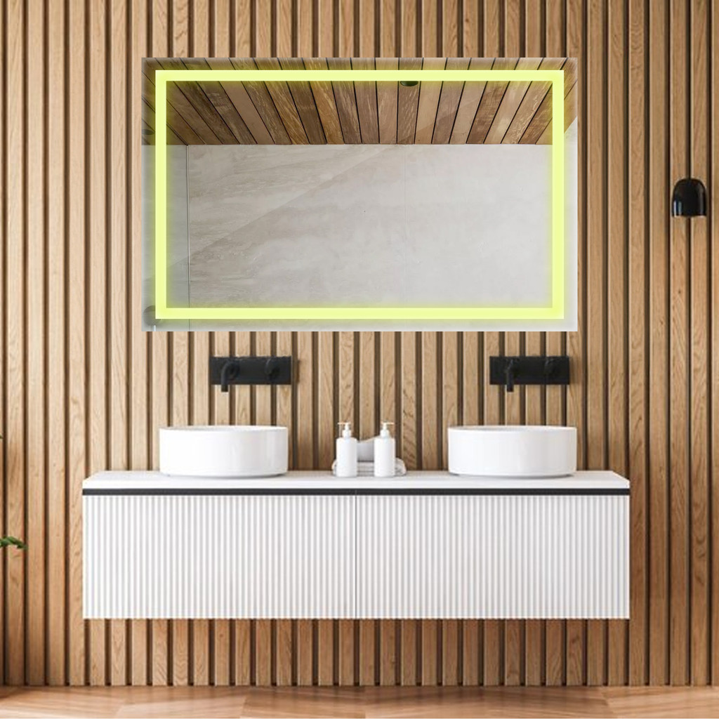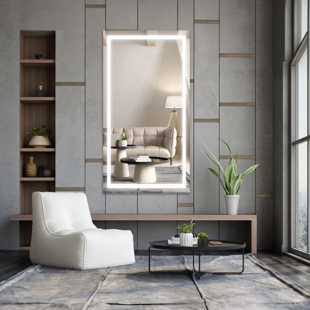 Espelho Retangular Jateado 60x80cm 3 Cores LED Touch Lapidado Luxo