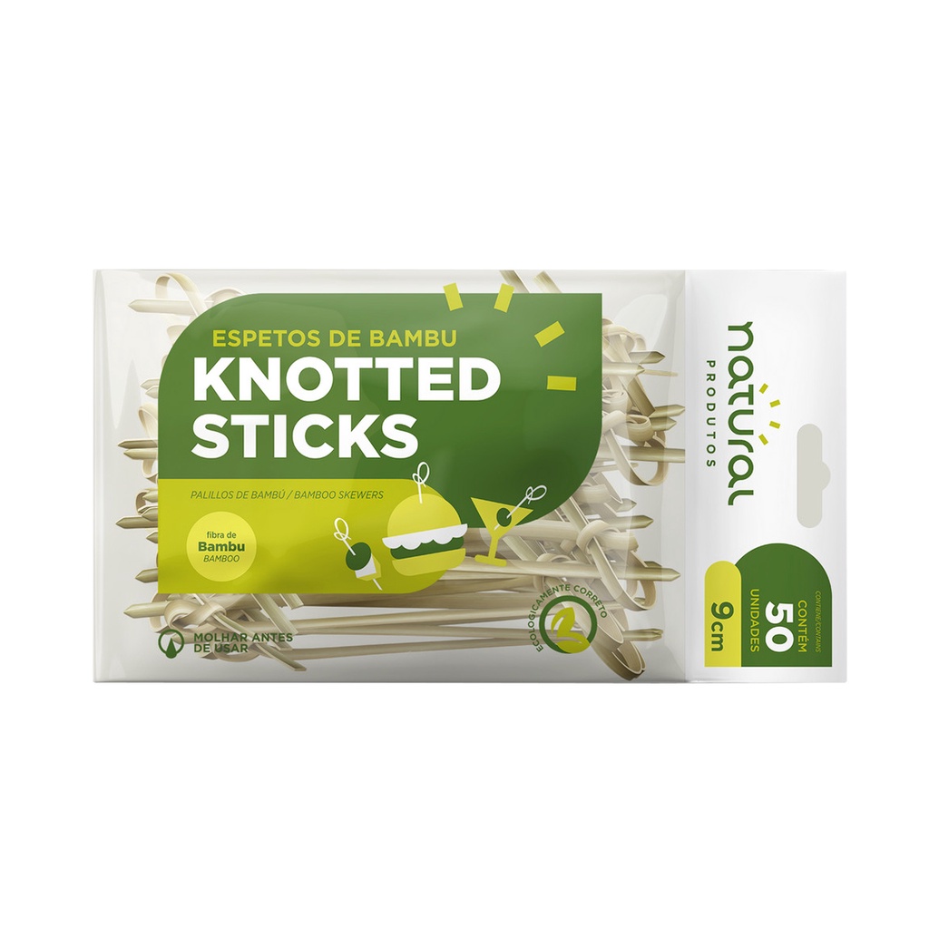 Espetos Palito de Bambu Knotted Stick Nozinho 9cm 50 unid