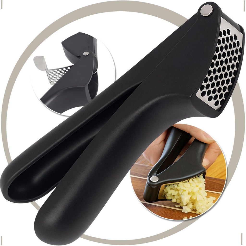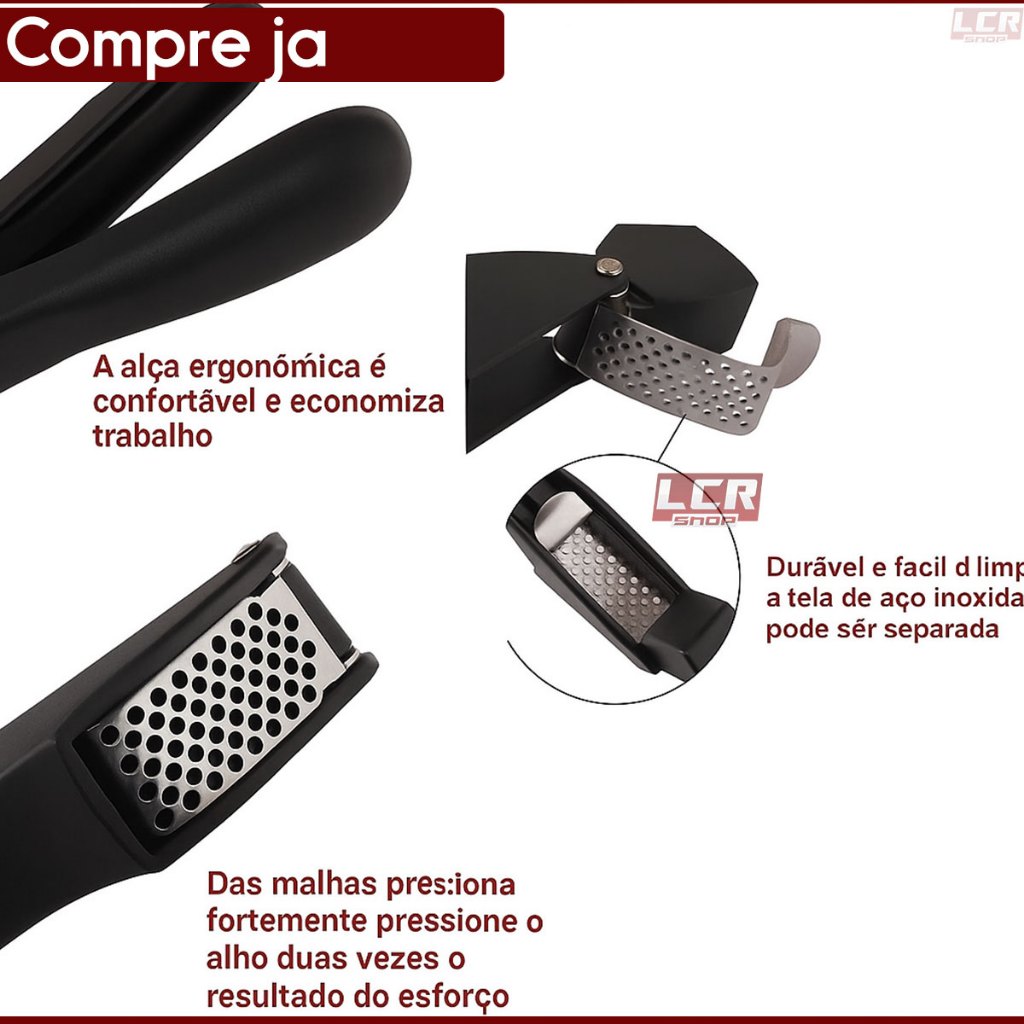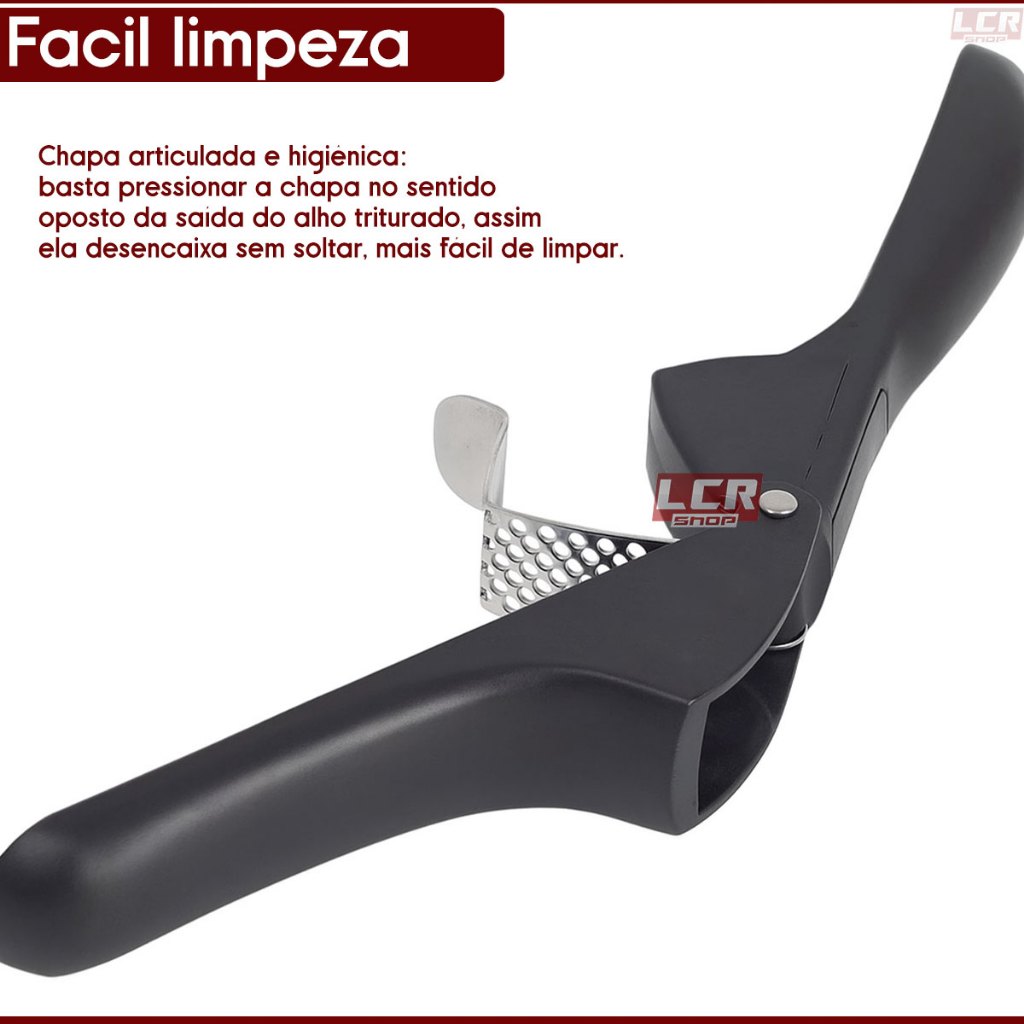 Espremedor De Alho Preto Aço Inox Profissional Amassador Triturador Premium Luxo Fácil Uso