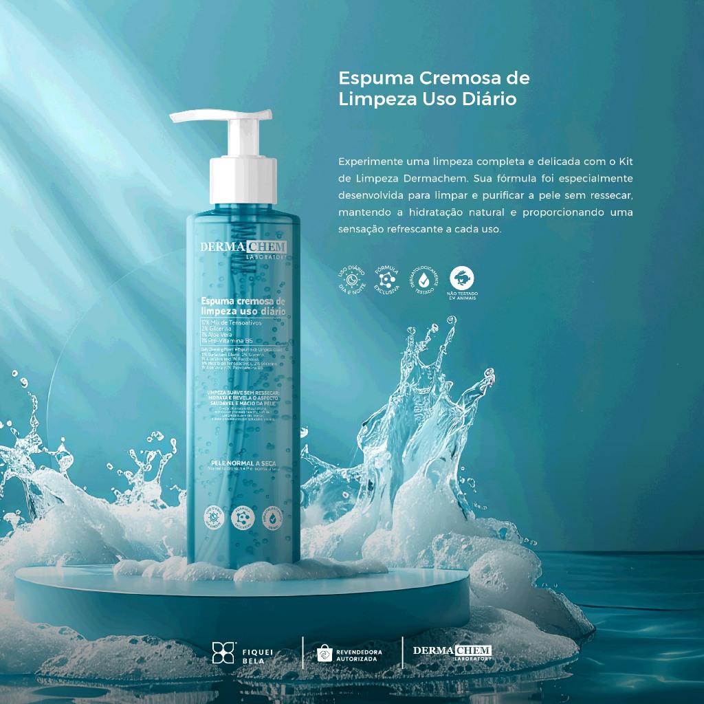 Espuma Cremosa de Limpeza Facial 240ml Hidratação e Maciez da Pele Com Aloe Vera Dermachem