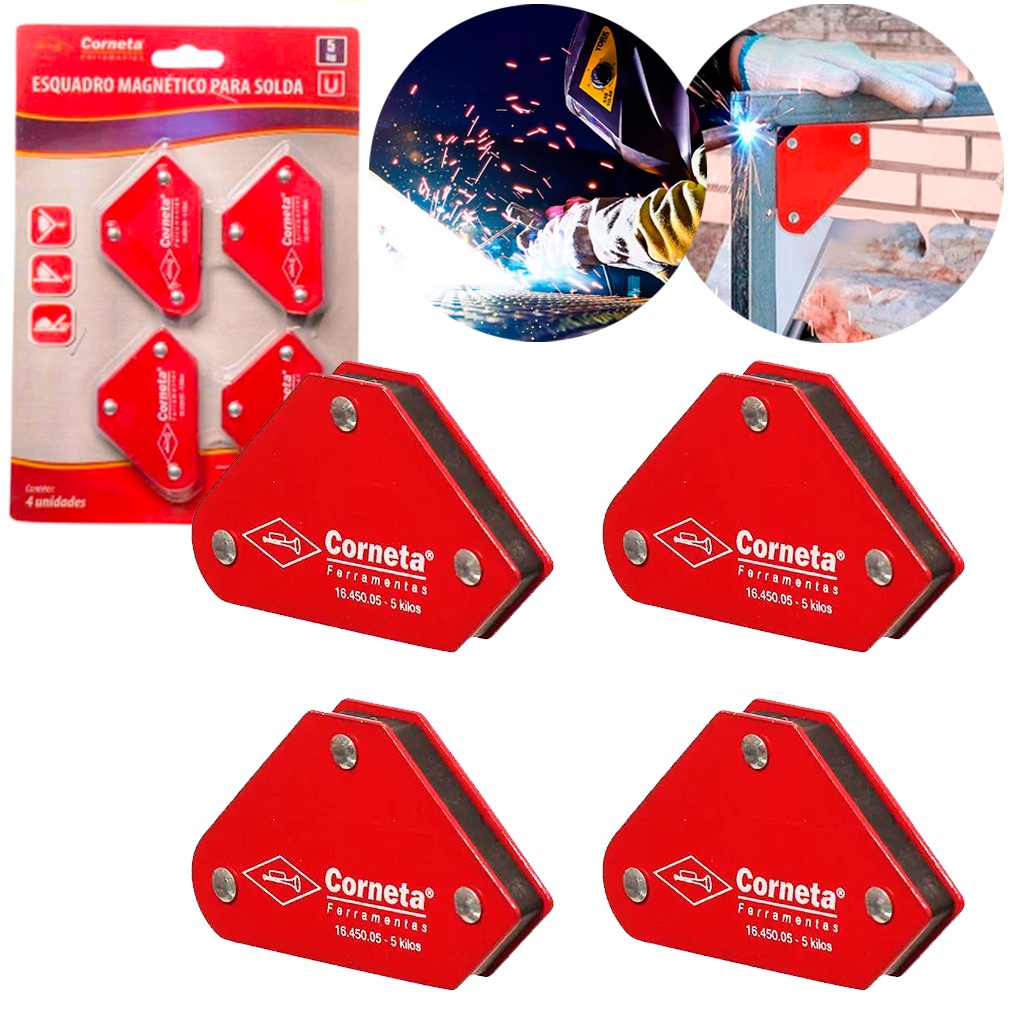 Esquadro Magnético Soldador Kit 4 Peças Pode Suportar Até 5kg Fixação Metais Auxiliar Serralheria