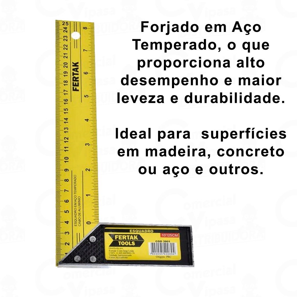 Esquadro Régua Carpinteiro Pedreiro Blocos Tijolos Metálico Aço De 25 Á 35cm Profissional