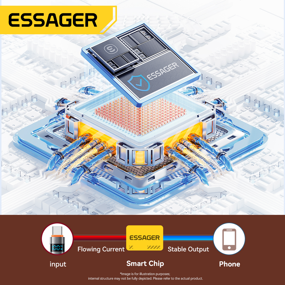 Essager Cabo USB-C para USB-C 100W 5A PD Carregamento Rápido Display Para Macbook Laptop iPad Xiaomi iPhone 15