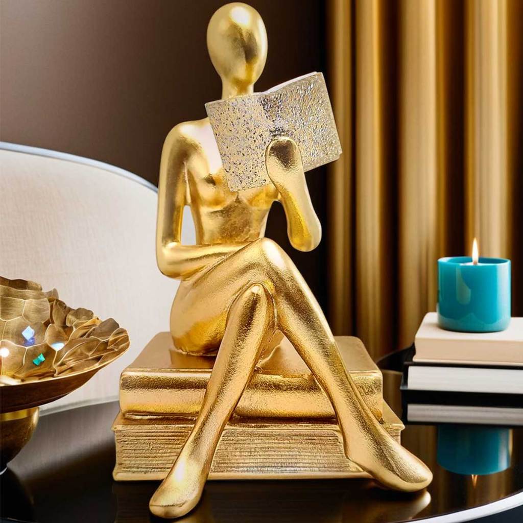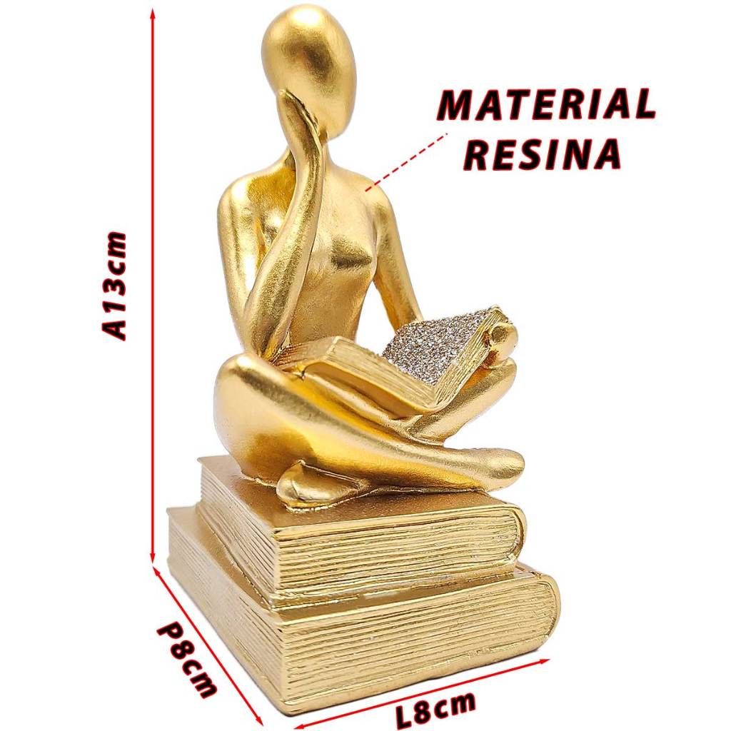 Estátua Figura Pensador Estudando Enfeite Decorativo Casa Estatueta Reflexão Mesa Escritório Decoração Luxo