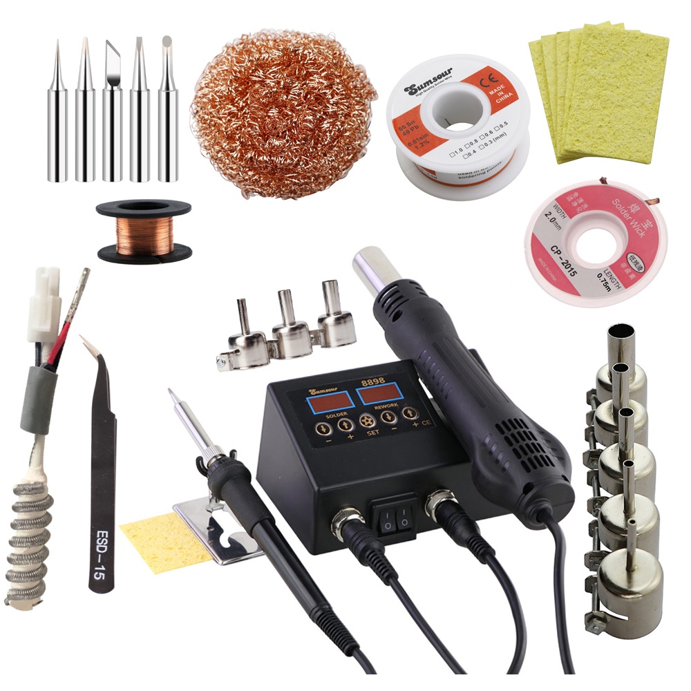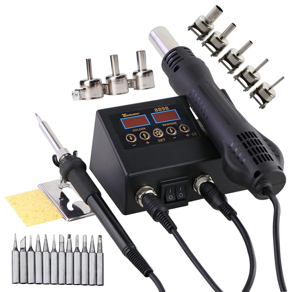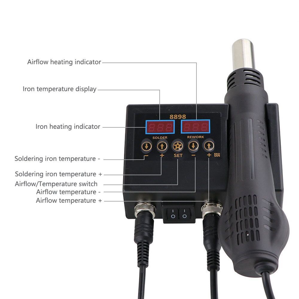 Estação De Solda 8898 Display Digital 2 Em 1 750 W Soldagem Retrabalho Elétrica Ferro E Ferramentas De Reparo De Ar Quente
