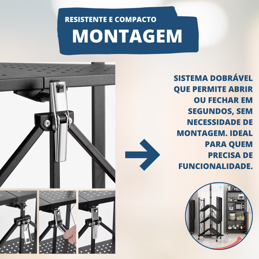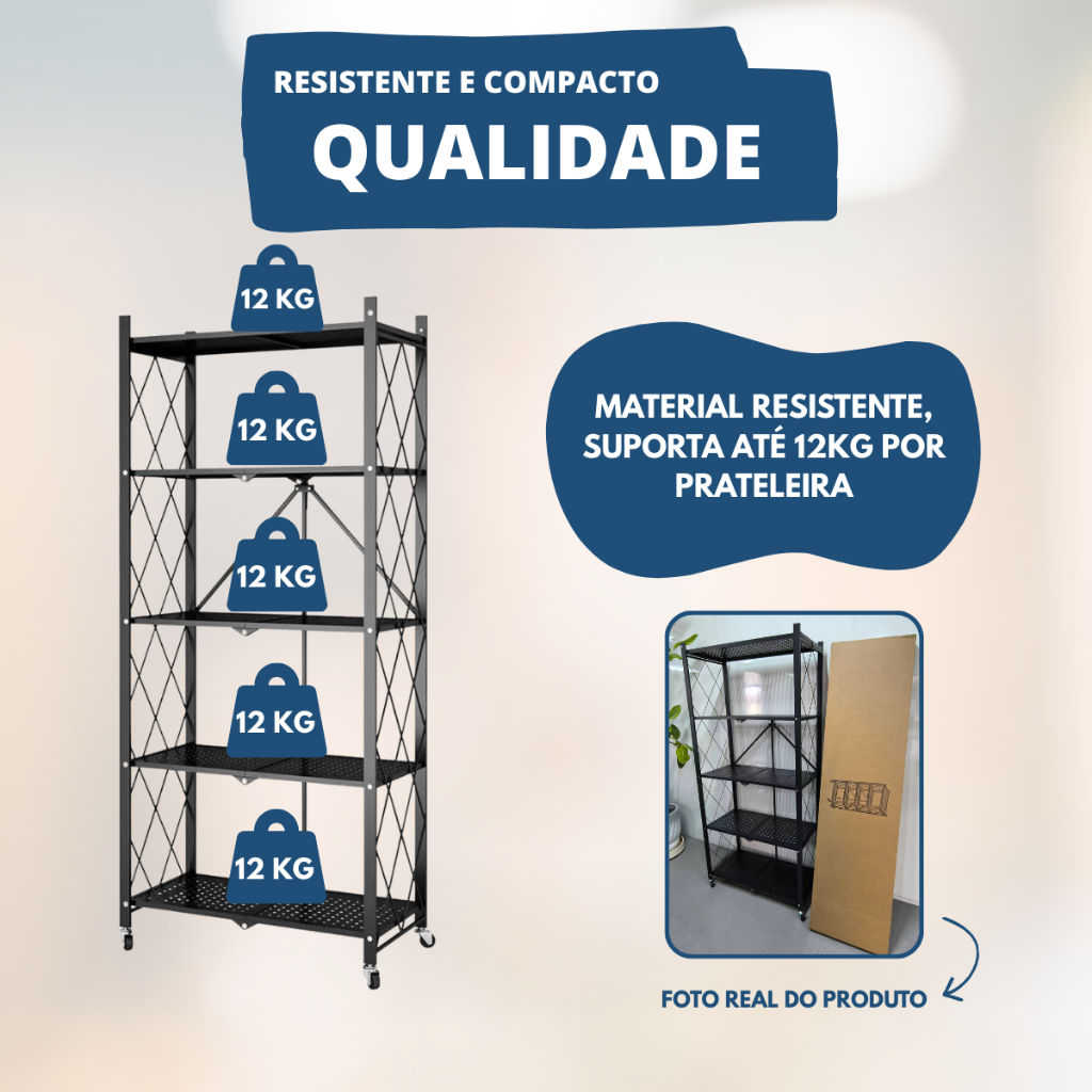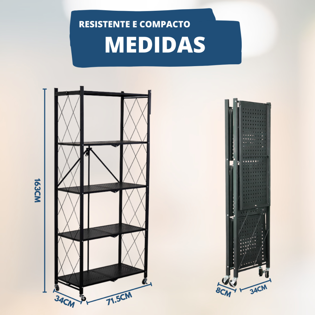 Estante 5 e 4 Andares Organizadora Aço Dobrável Industrial Reforçada Expositor Loja Estoque