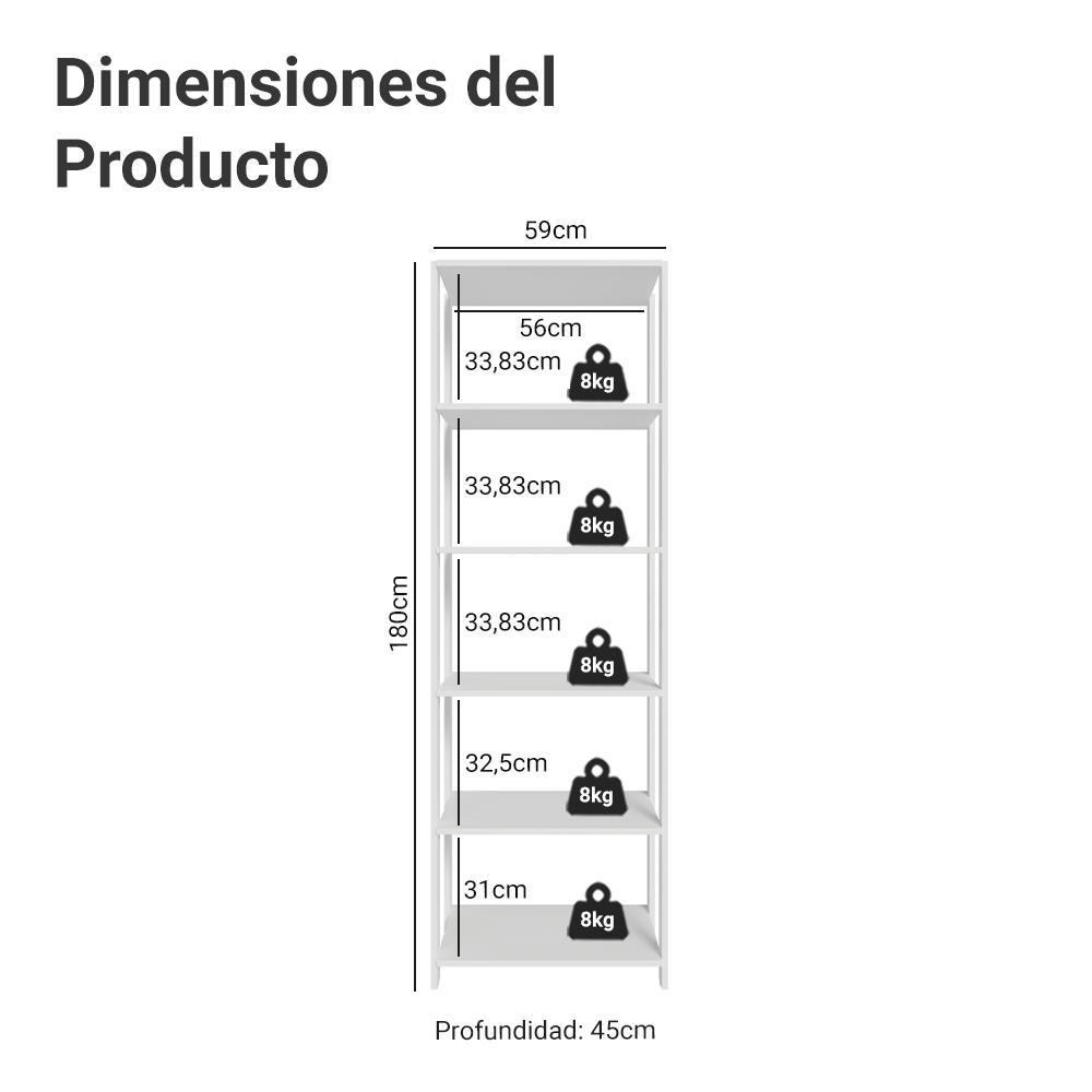 Estante Armário Multiuso para Escritório 59cm 5 Prateleiras Branco Madesa