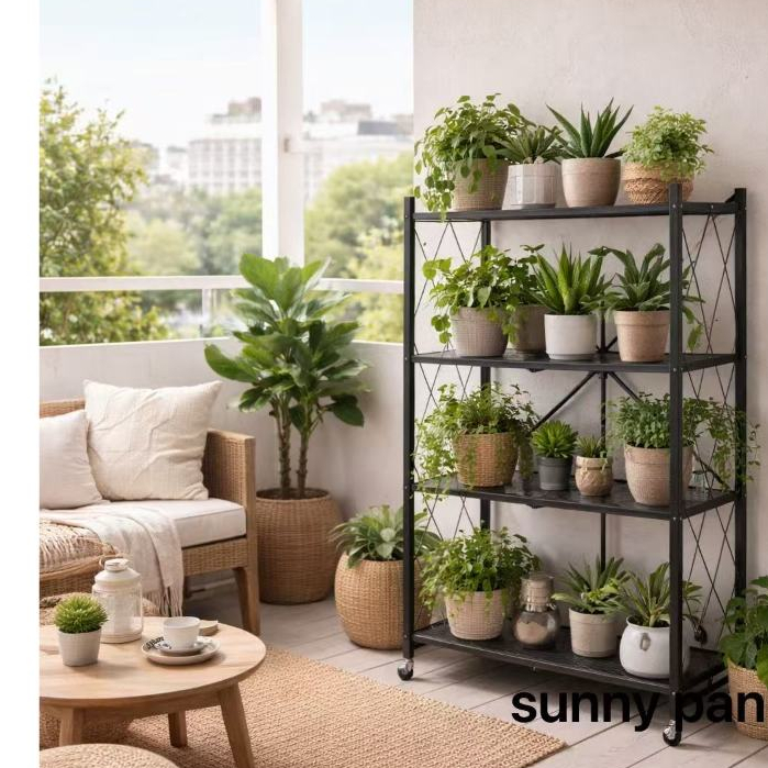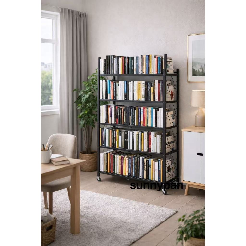 Estante Dobrável Em Aço Industrial Prateleira Multiuso 4 Andares E 3 Andares Com Rodinhas