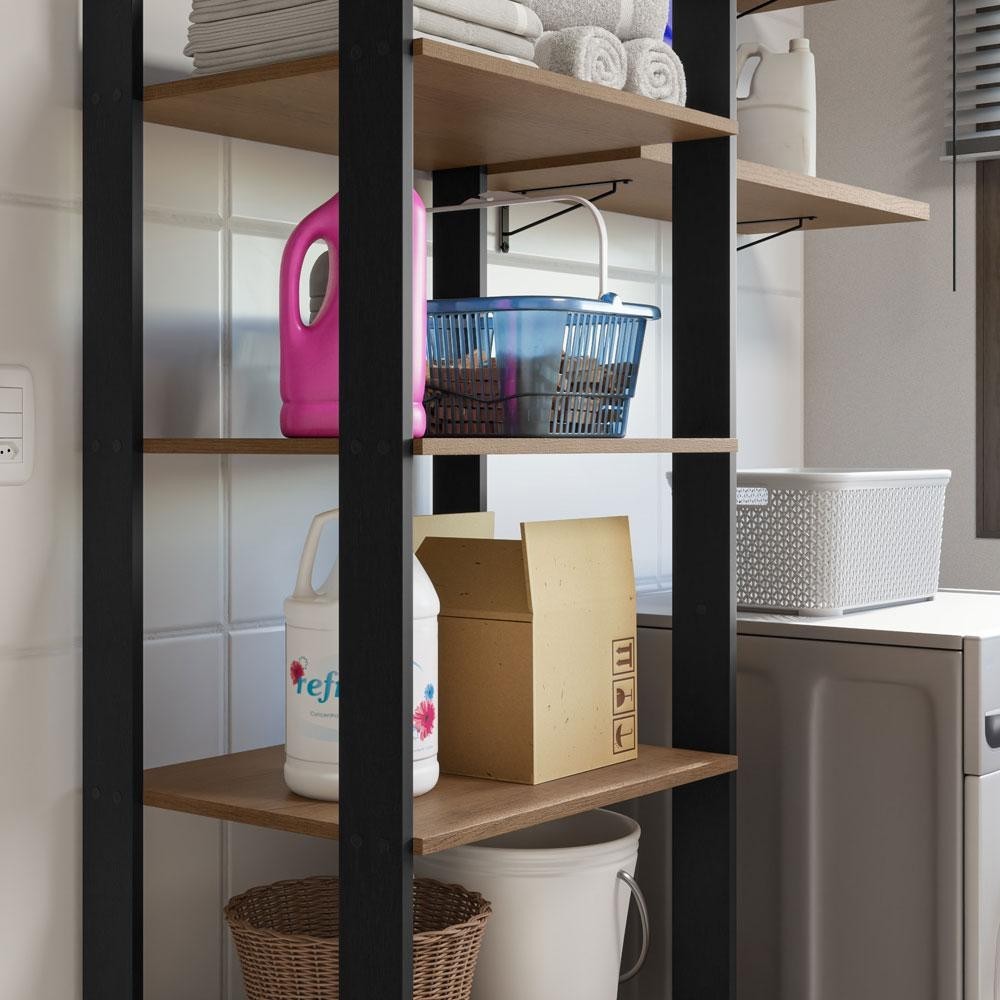 Estante Multiuso + Prateleiras para Lavanderia 139cm Rustic/Preto Madesa