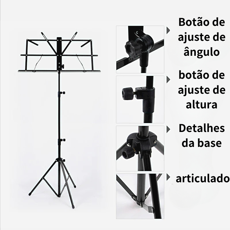 Estante Partitura Pedestal Musical Dobrável Tripé Apoiador