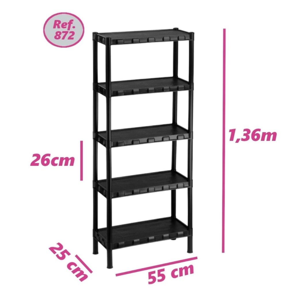 Estante de plástico organizadora preta Agraplast Com Pezinhos - 5 Prateleiras