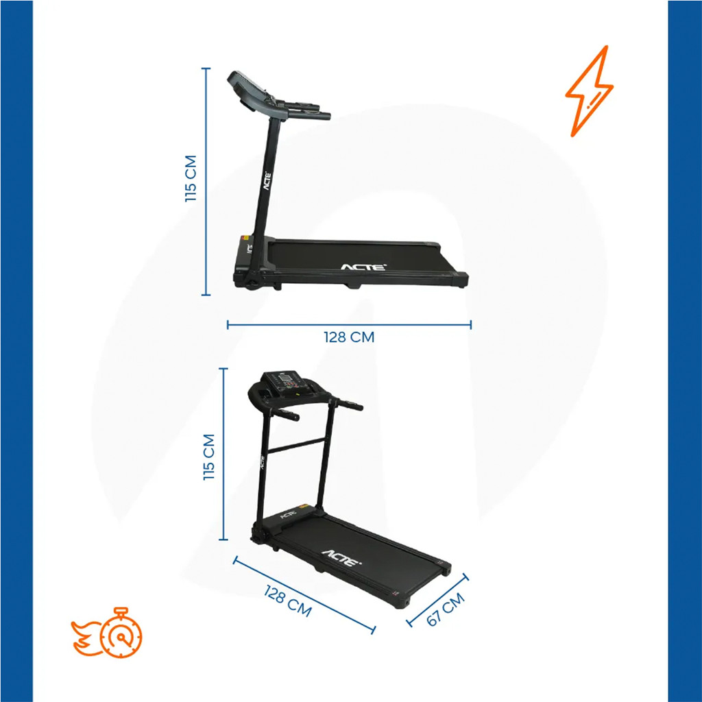 Esteira Ergométrica Elétrica E41 Compacta Motor 1,5HP com Painel LCD Multifunções Sensor Cardíaco Ideal p/Treinos Acte