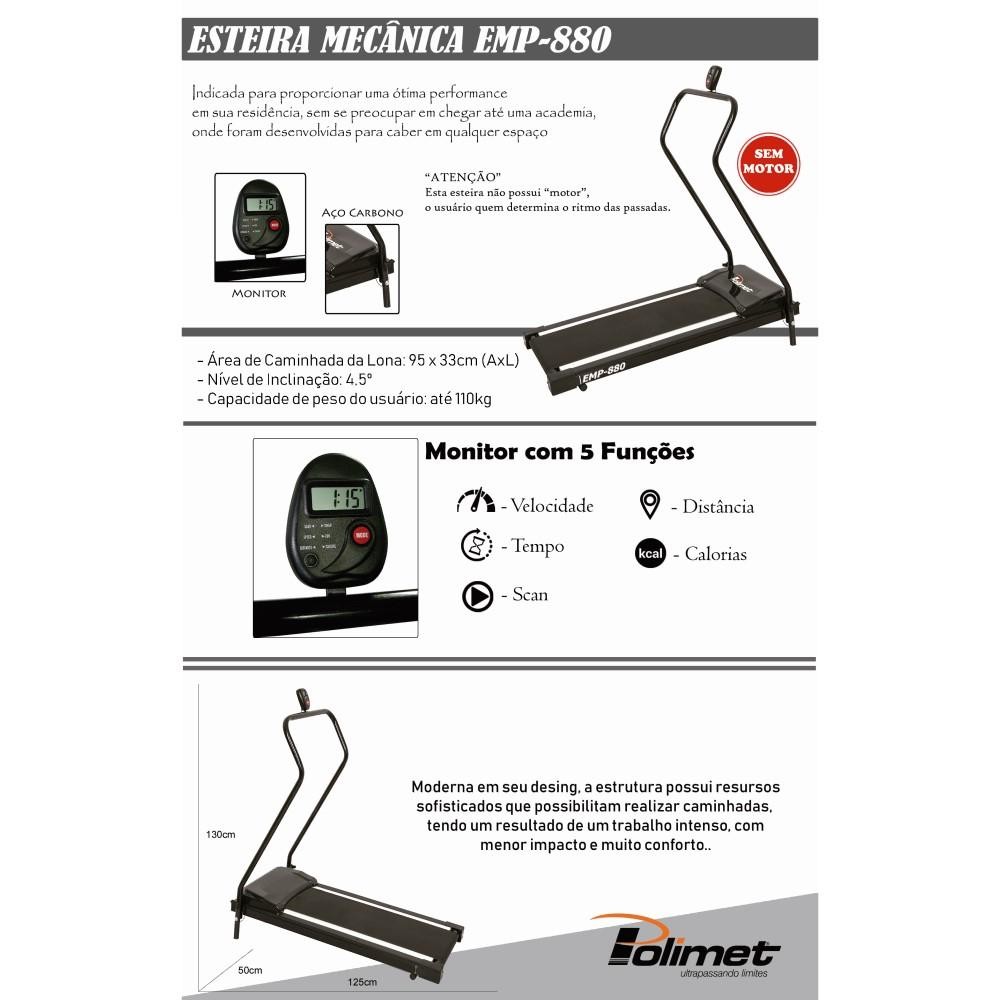 Esteira Mecânica Polimet EMP 880 Residencial Profissional Com Painel 5 Funções Fitness Cor Preto
