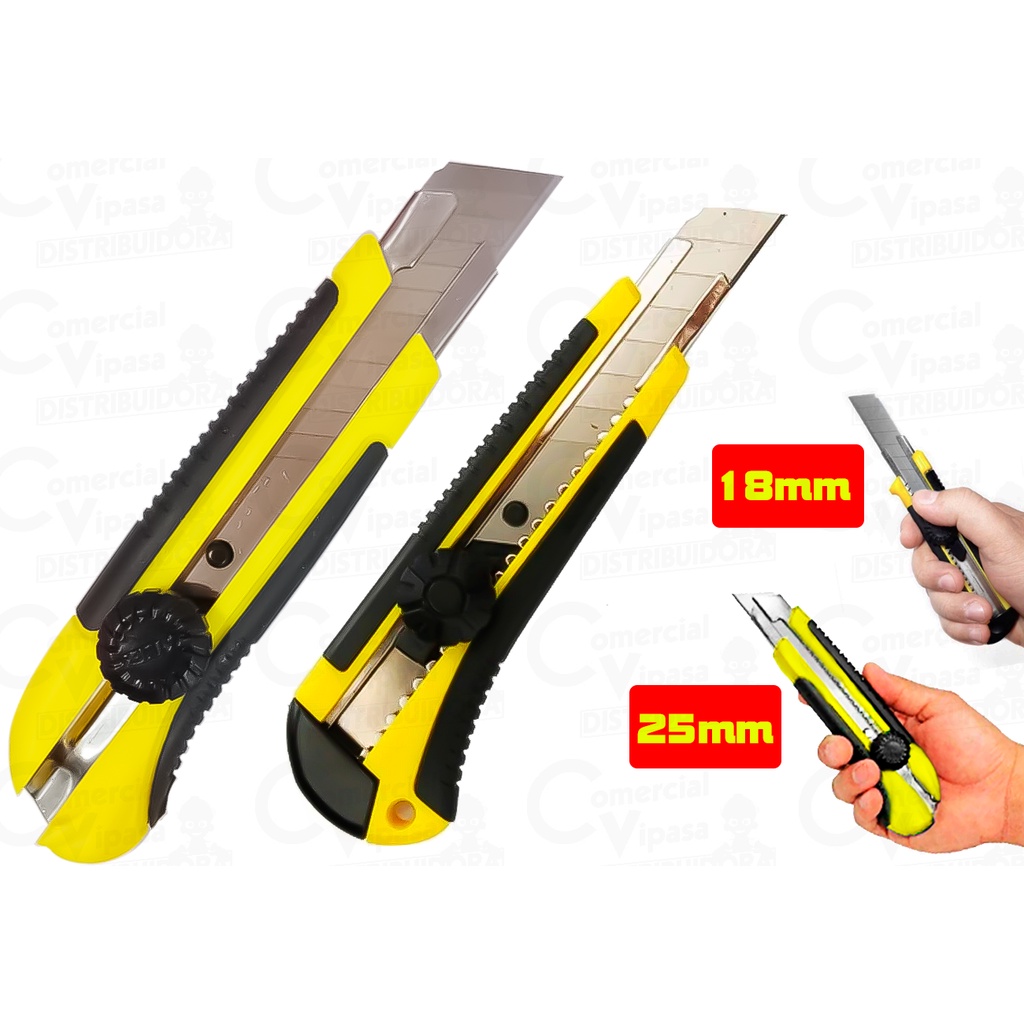 Estilete Profissional Com Cabo Emborrachado 18mm E 25mm Com Trava Profissional
