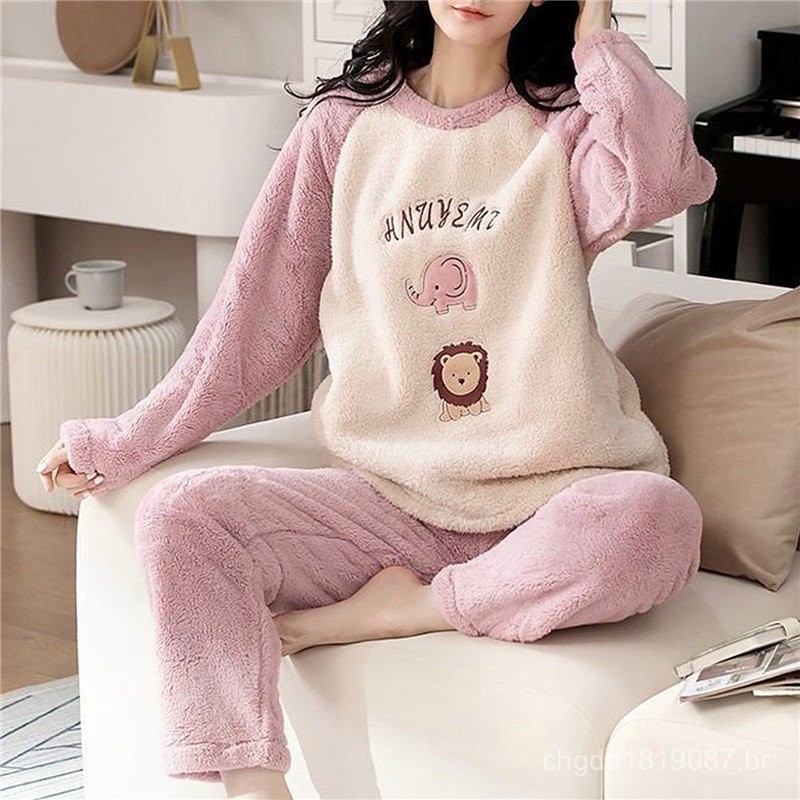 Estilos Conjunto de Pijama Feminino Adulto Confortável Quente/Inverno
