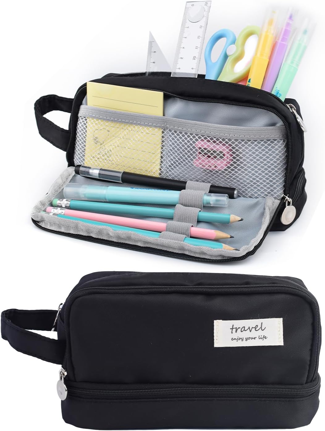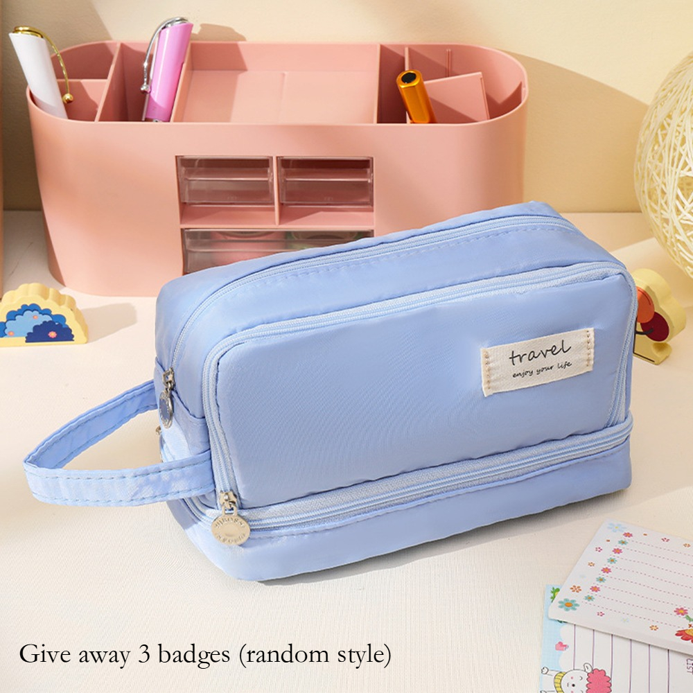 Estojo De Lápis De Grande Capacidade Lona Roxa Kawaii Fofo Cor-De-Rosa Para Estudantes
