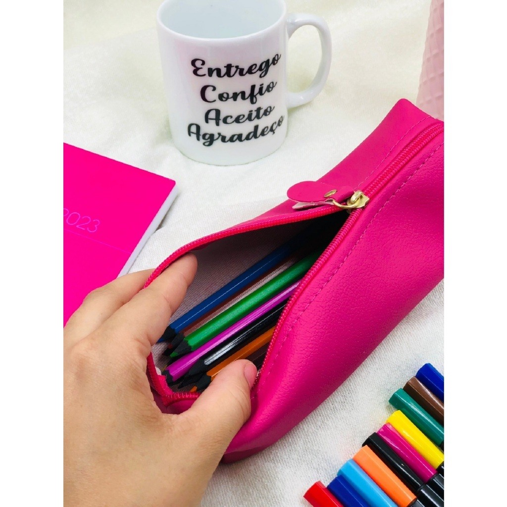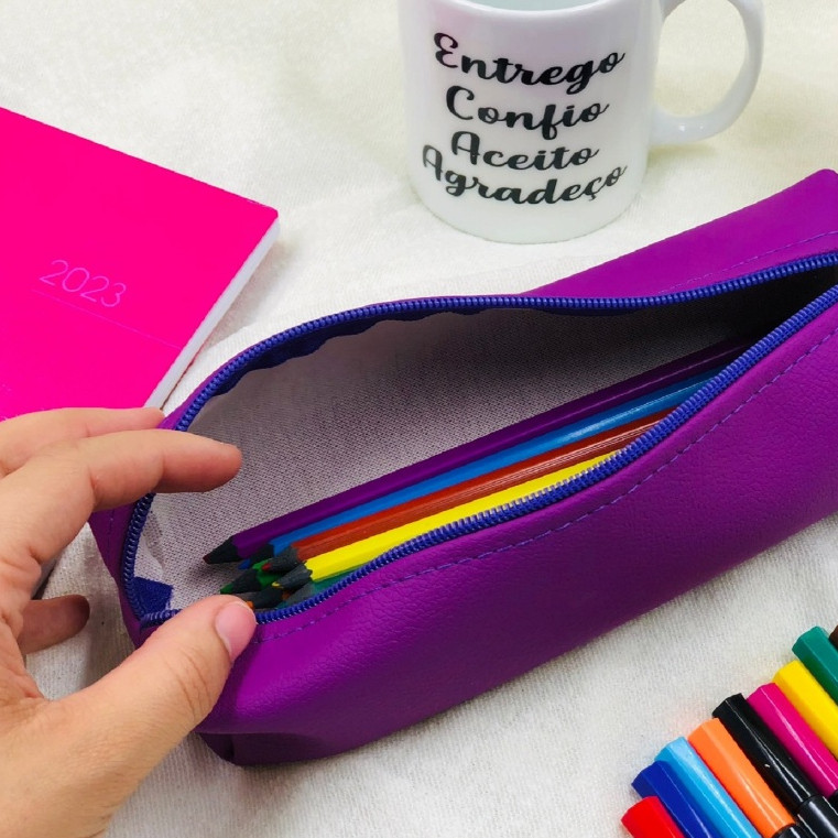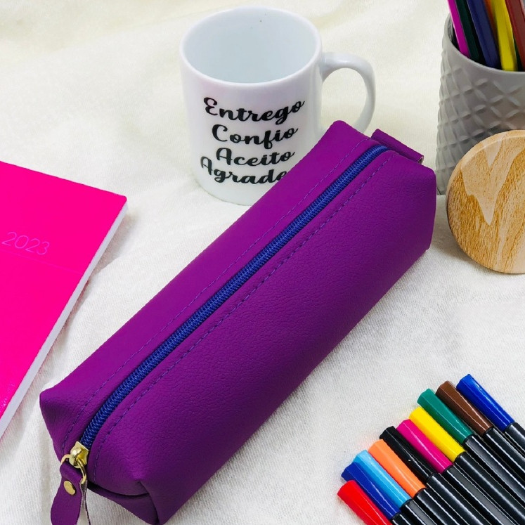 Estojo Escolar Liso 1 Divisória Multiuso Universal Vários Modelos e Cores Couro Organizador