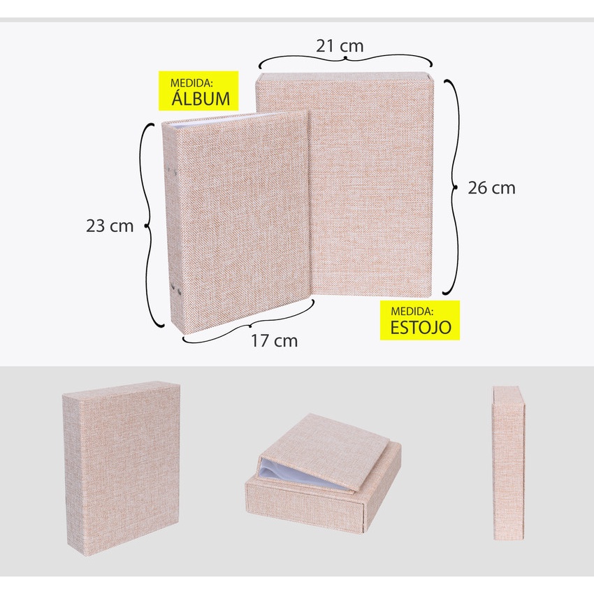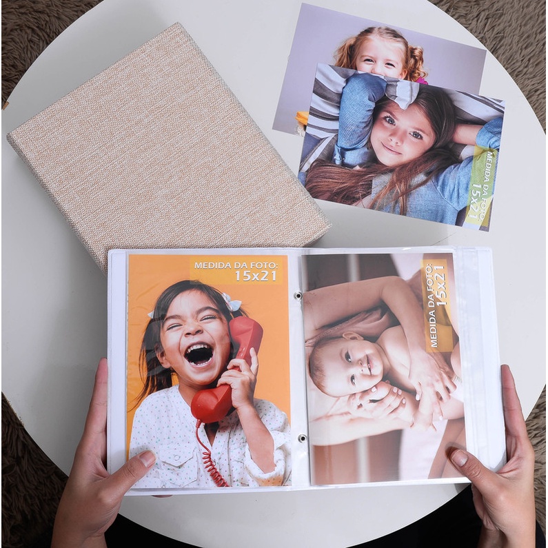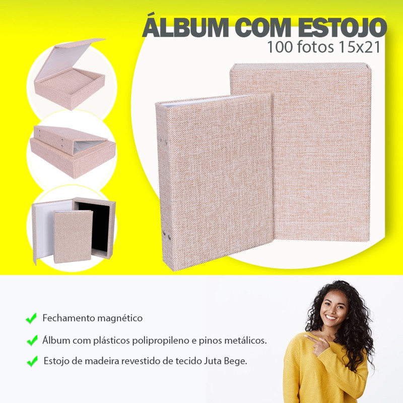 Estojo Imantado com Álbum para 100 Fotos 15x21 - JUTA BEGE Luxo Premium Reforçado