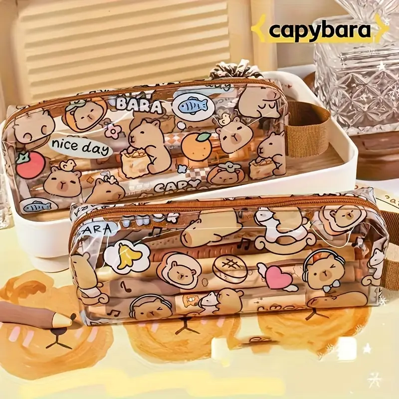 Estojo Transparente Bonito Dos Desenhos Animados Capivara , Saco De Lápis Portátil Resistente À Sujeira De Grande Capaci