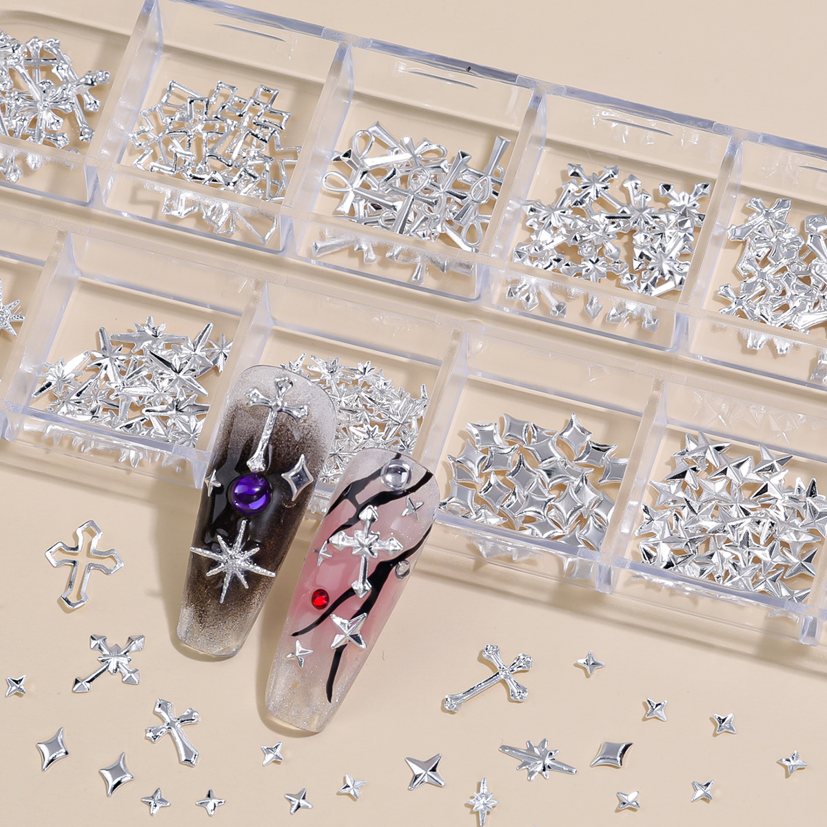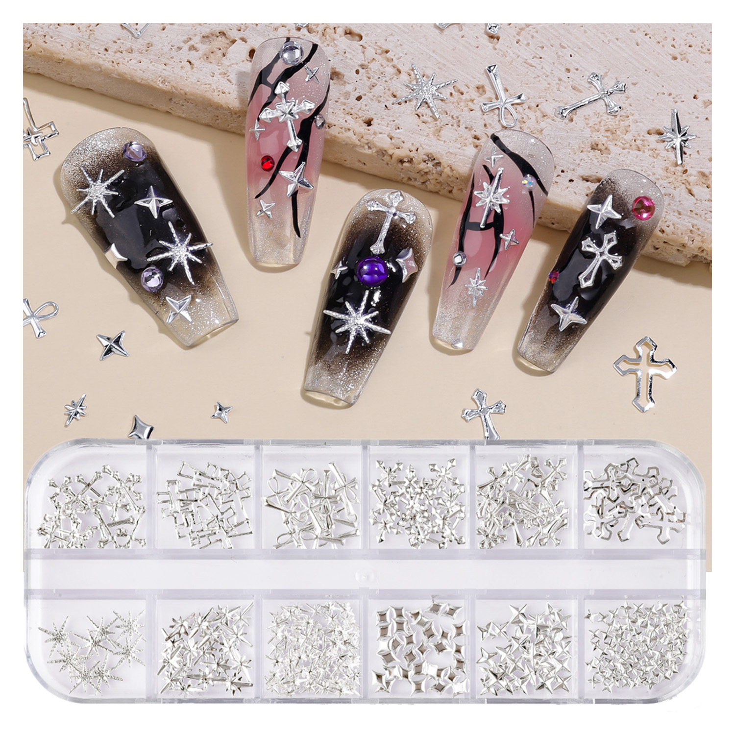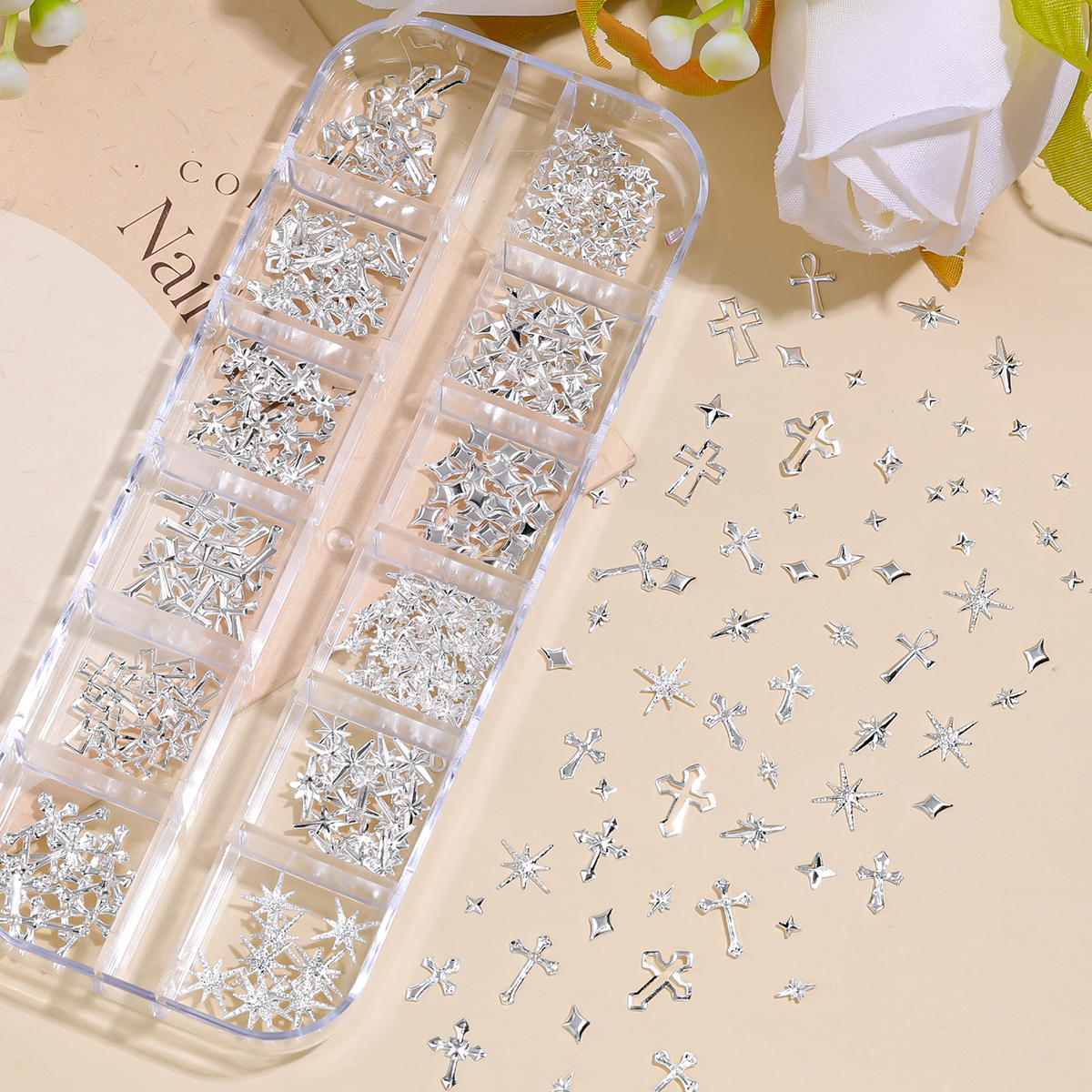 Estrelas de Unha em 3D, Charms de Unha em Forma de Cruz, Acessórios Metálicos para Arte em Unhas em Várias Formas,
