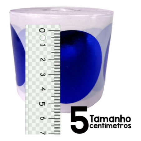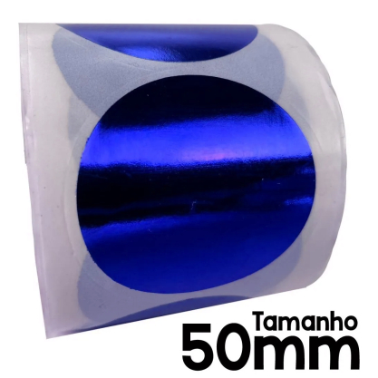 Etiqueta Adesiva Redonda Metalizada Azul 5x5cm | Kit 3 Rolos c/ 250 Unidades BOPP Brilho