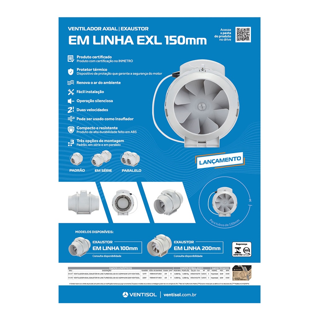 Exaustor Axial Turbo 150mm 65w Exl Branco 127v Ventisol