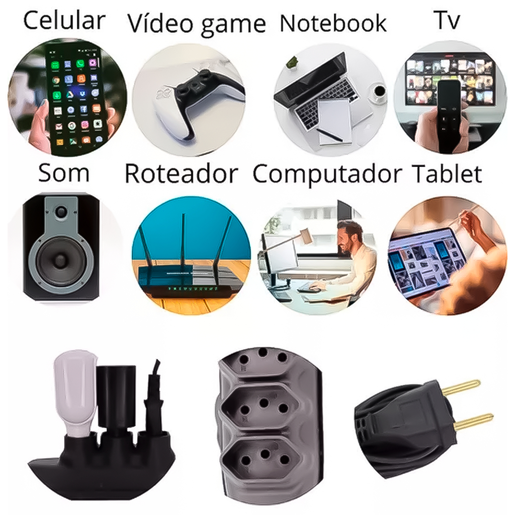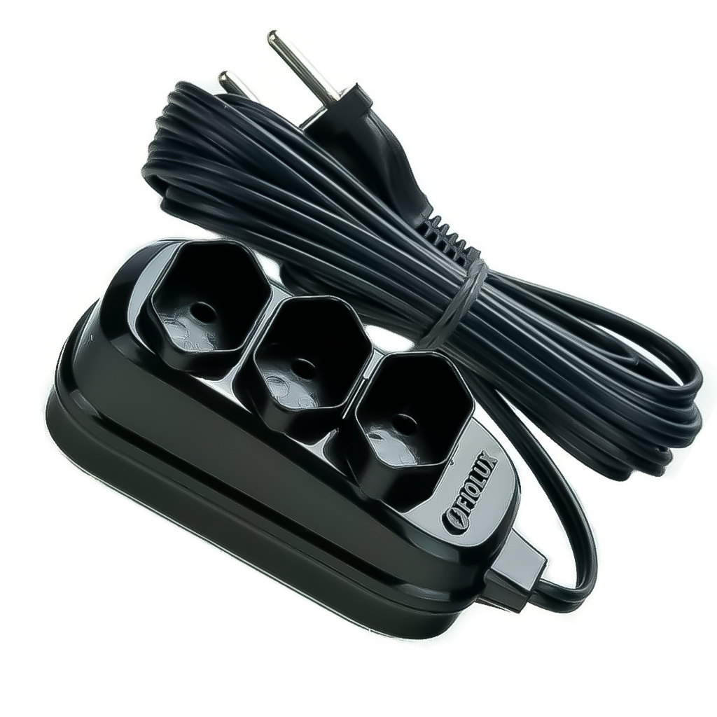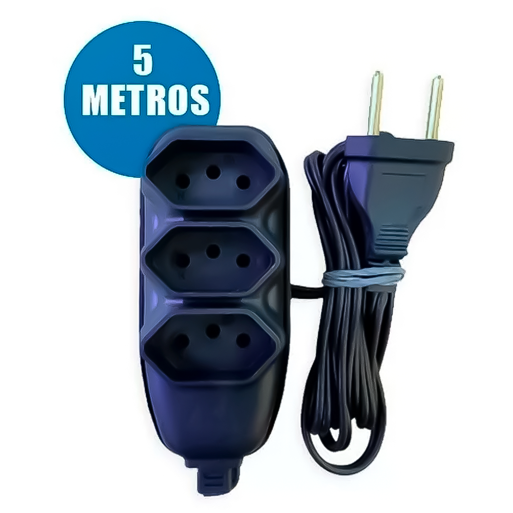 Extensão 5 Metros Bivolt Tripolar Preta Com 3 Tomadas 2P+T Profissional Fiolux Alta Qualidade