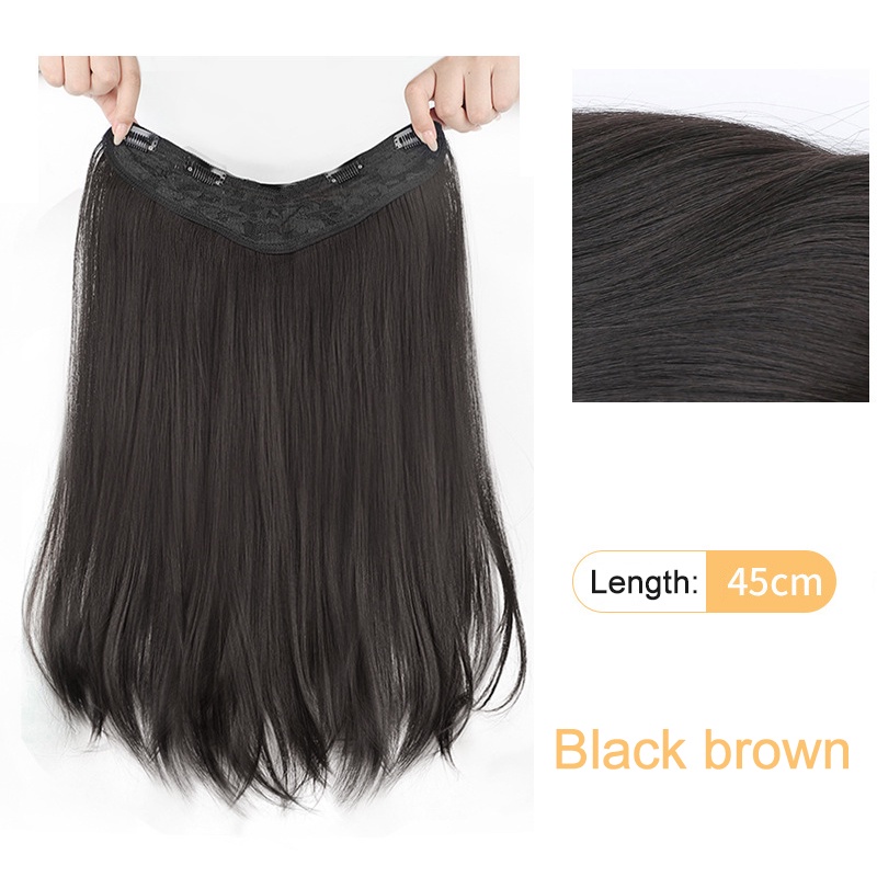 Extensão De Peruca Em Forma De U Enrolado Médio Estilo Coreano 45 Cm Para Mulheres-Aparência Natural