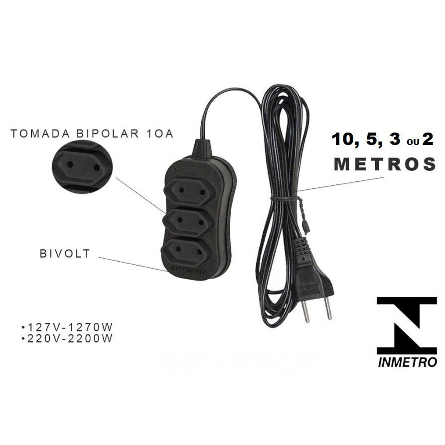 Extensão Elétrica Extensão de Energia 3 Tomadas Compacta Bivolt 2, 3, 5 e 10 Metros Resistente