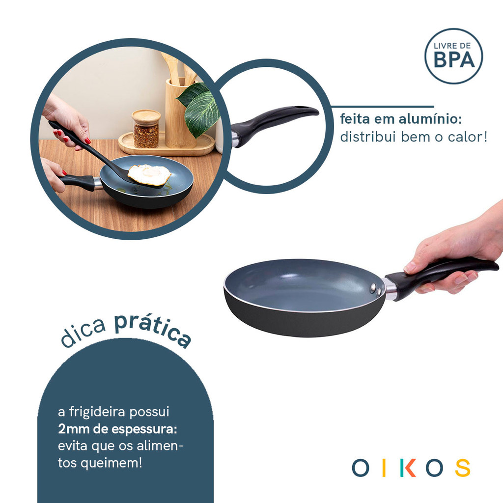 FRIGIDEIRA 18CM COM ANTIADERENTE CERÂMICO BASE - OIKOS