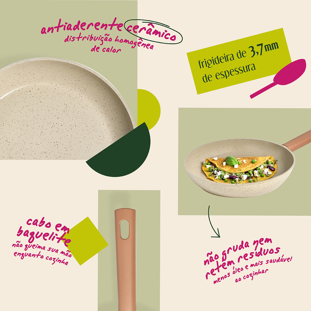 FRIGIDEIRA 20CM DE INDUÇÃO COM ANTIADERENTE CERÂMICO MOU DE PITAYA - OIKOS