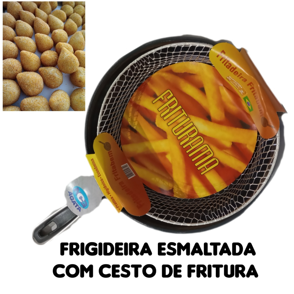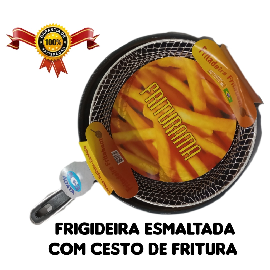 FRIGIDEIRA COM CESTO PARA FRITURAS ESMALTADA 25CM DIÂMETRO FRIGIDEIRA COZINHA FRITADEIRA
