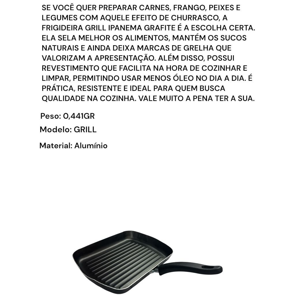 FRIGIDEIRA MODELO GRILL GRAFITE 29,6x22x3,8CM ALUMINIO