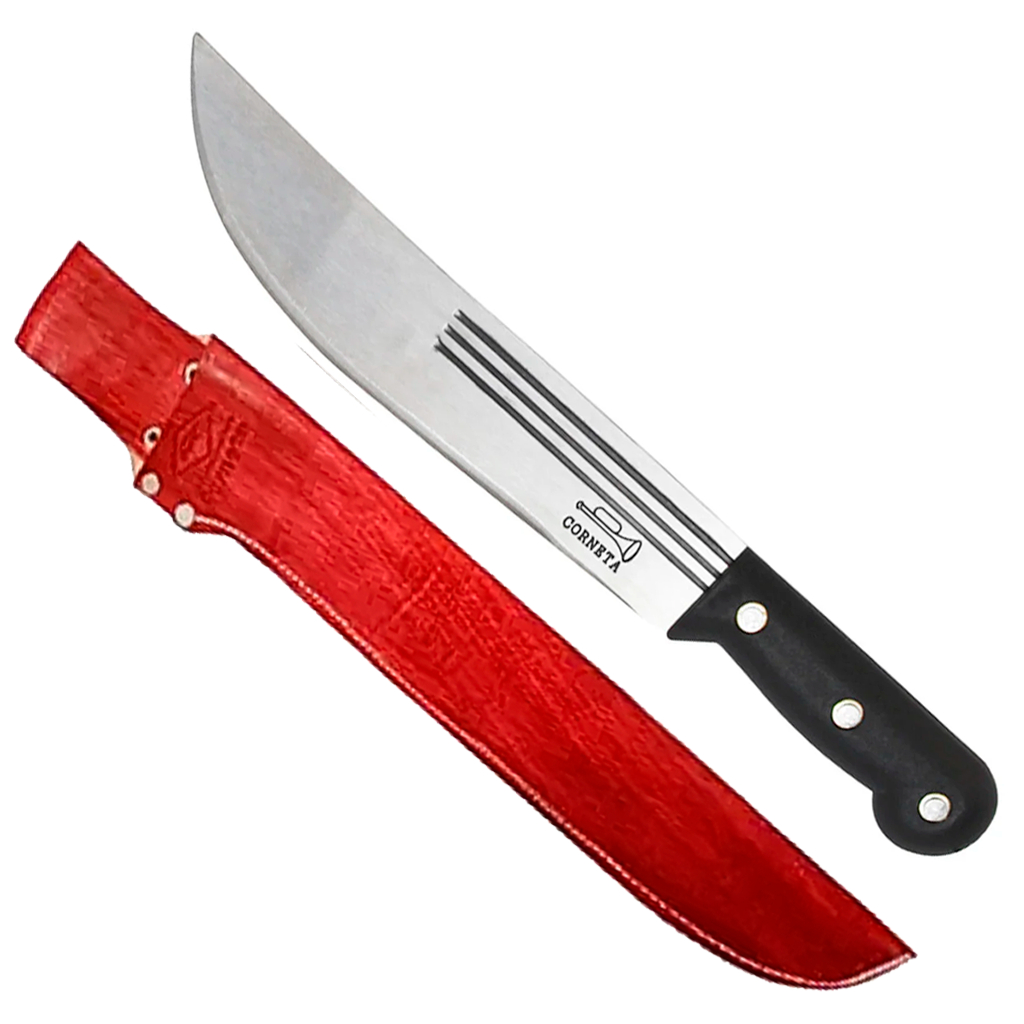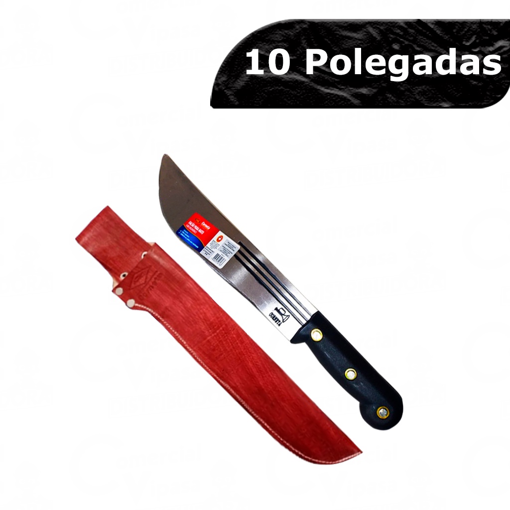 Facão Para Mato Alfaiate Ferro Fundido Cabo PVC + Bainha Couro Legítimo Profissional 10Pol - CORNETA