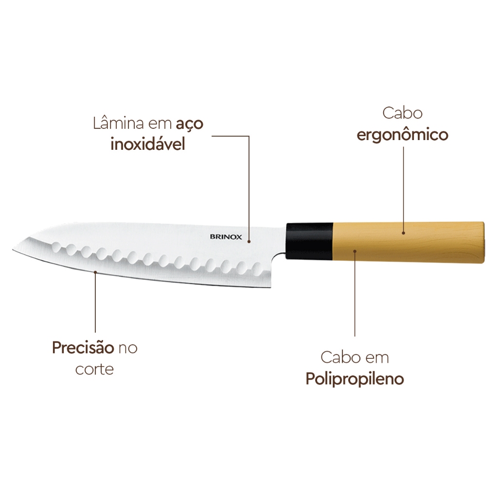 Faca Para Peixe E Legumes Brinox Samurai 7'' 30,5 cm Aço Inox