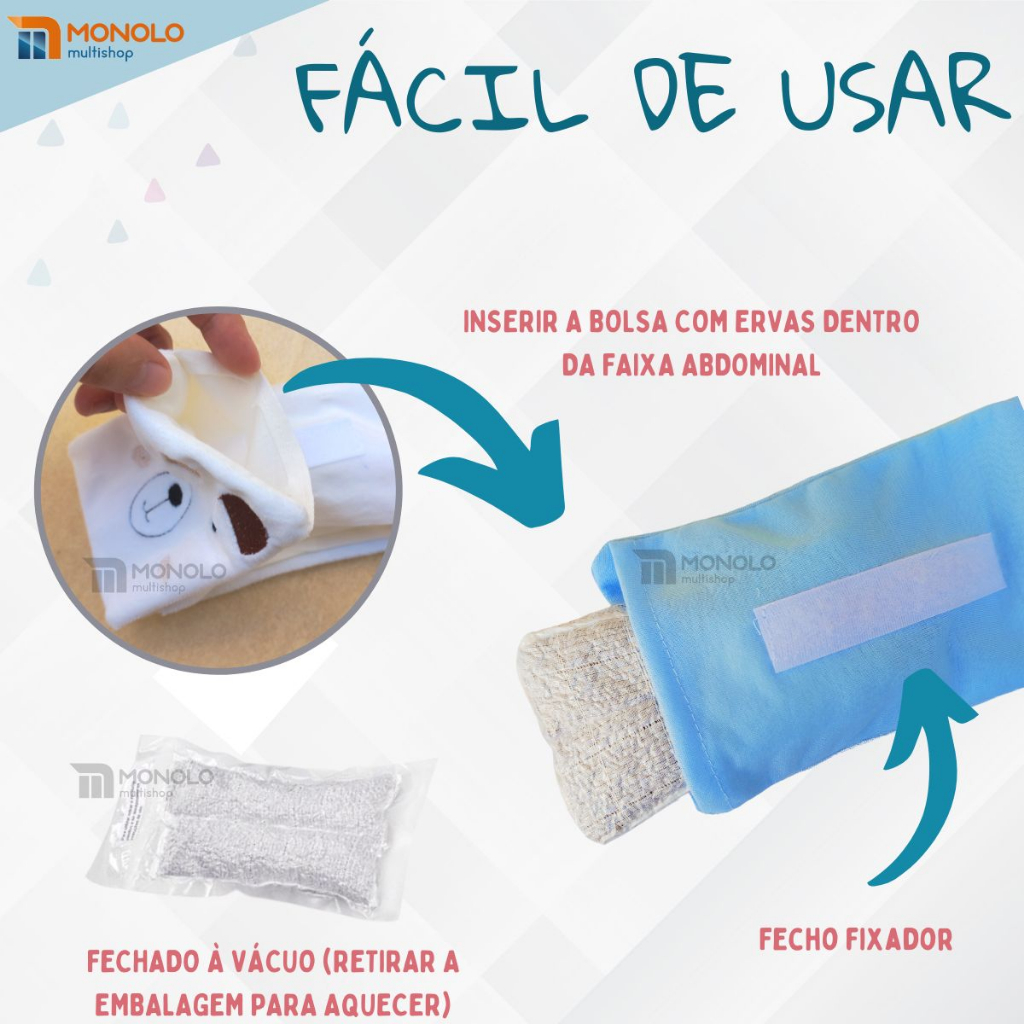 Faixa Térmica Abdominal c/ Ervas Bebês Alivia Cólica Gases Cinta Semente Anti Gases Acalma Baby