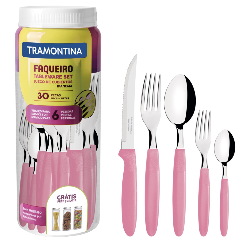 Faqueiro Tramontina Ipanema com Lâminas em Aço Inox Rosa