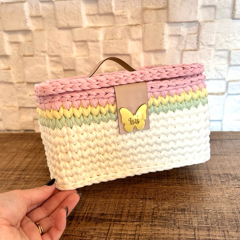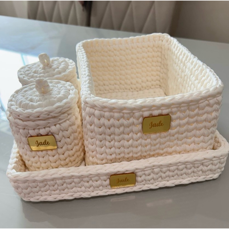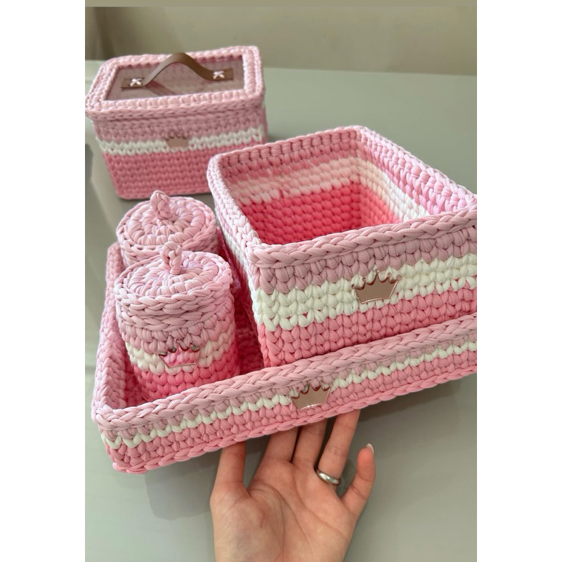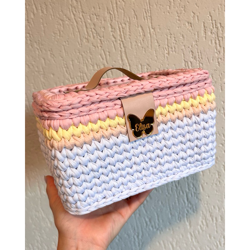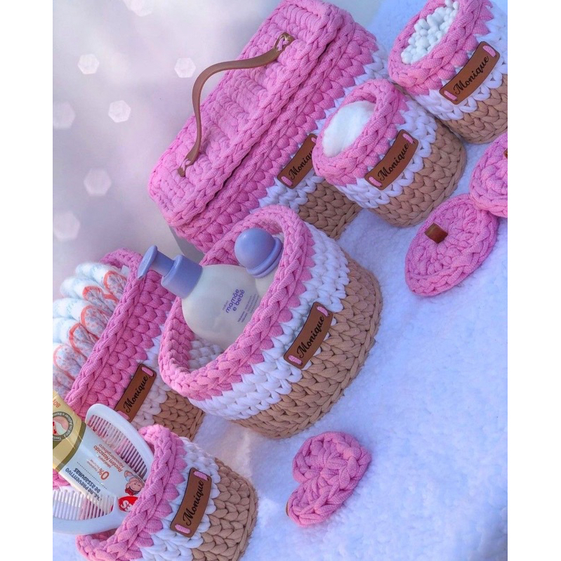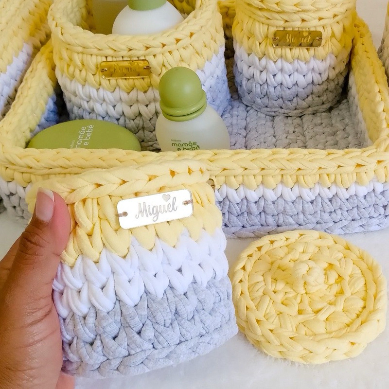 Farmacinha Kit Higiene Bebê em Fio de Malha Personalizada | Caixa Organizadora com Tampa em Acrílico | Porta Remédios